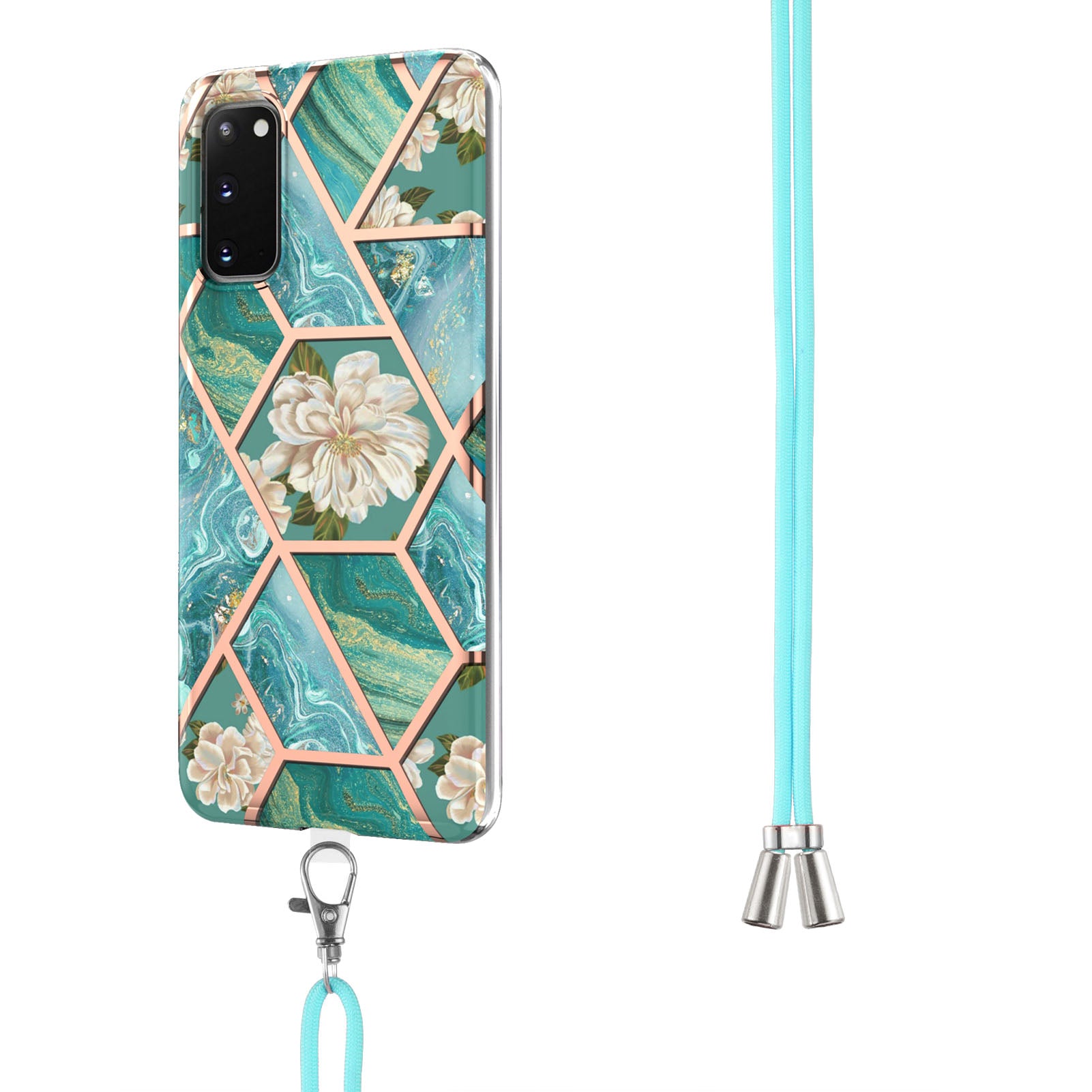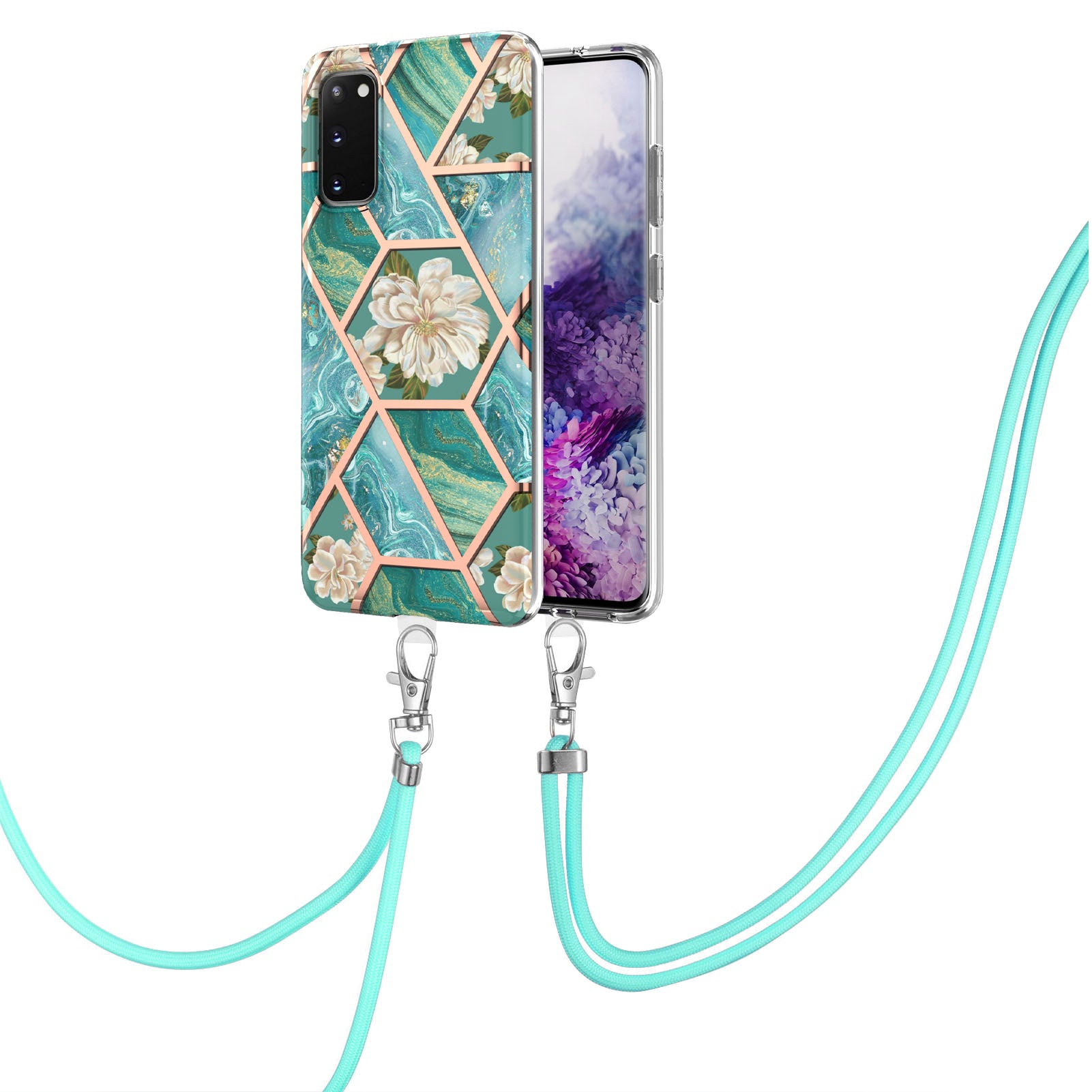 IMD IML TPU Phone Shell Electroplating Flexible Case with Marble Flower Pattern + Long Lanyard for Samsung Galaxy S20 4G/S20 5G - Orchid
