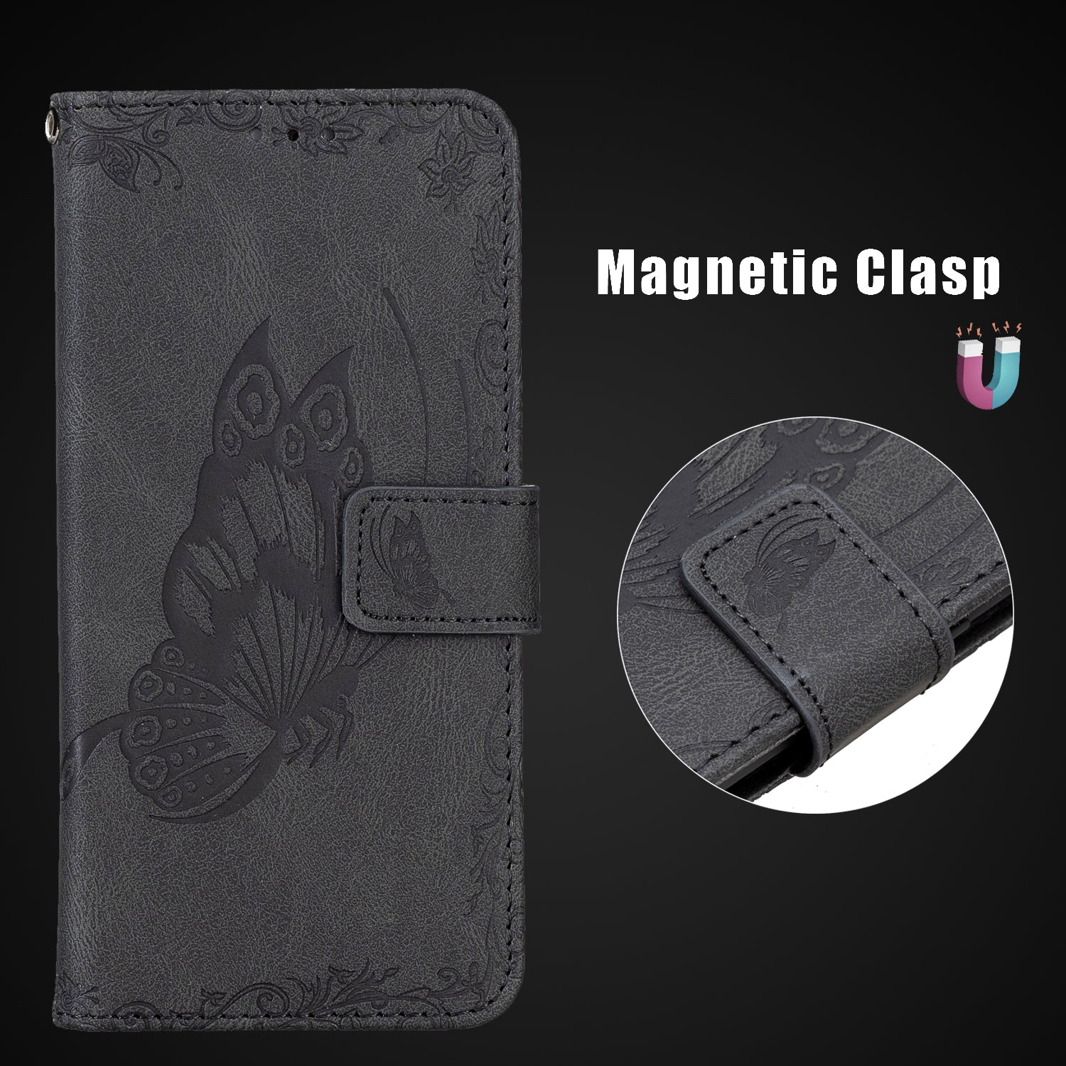•1 x Imprint Butterfly Flower Leather Wallet Case