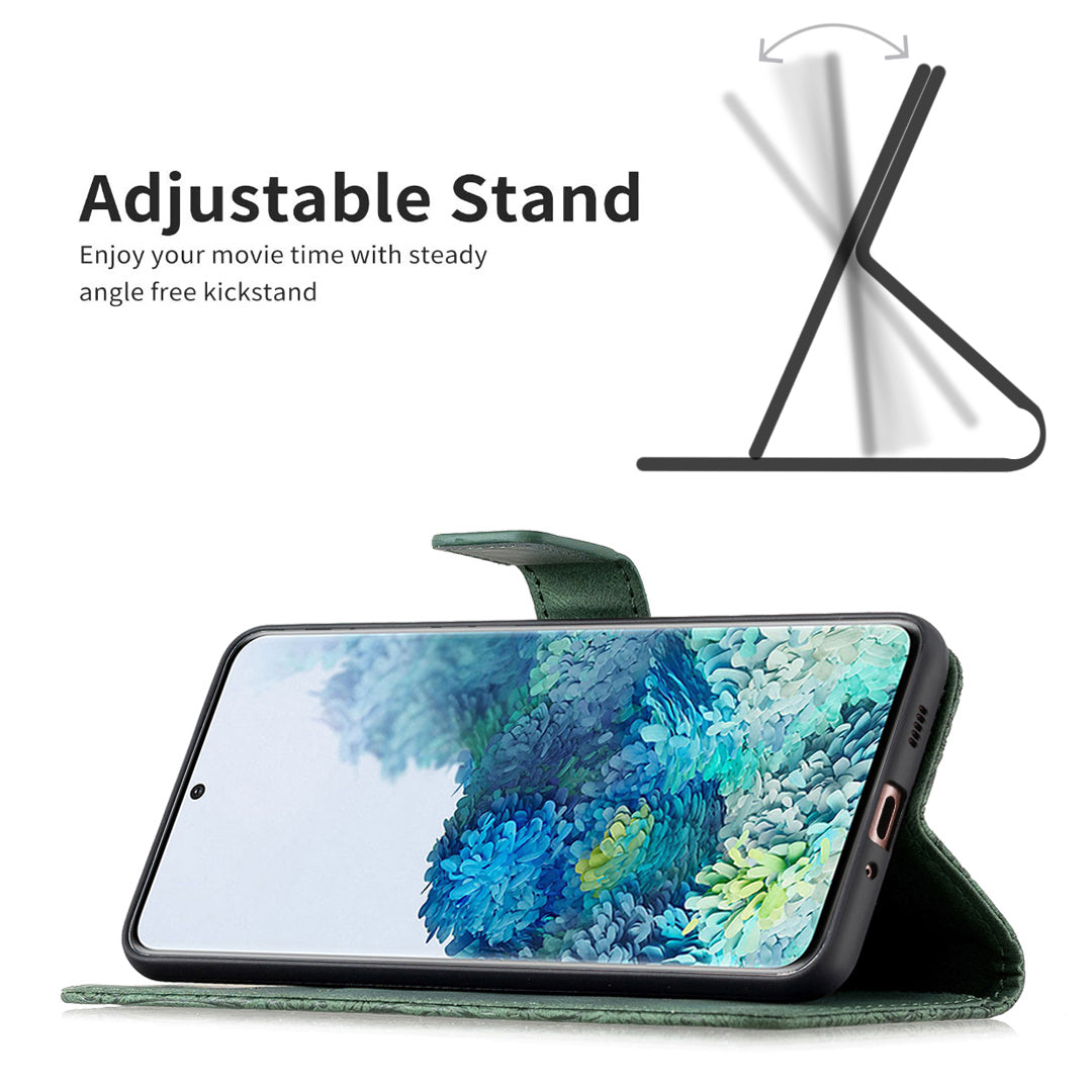 Imprint Butterfly Flower Leather Wallet Shell Case for Samsung Galaxy S20 4G/S20 5G - Green
