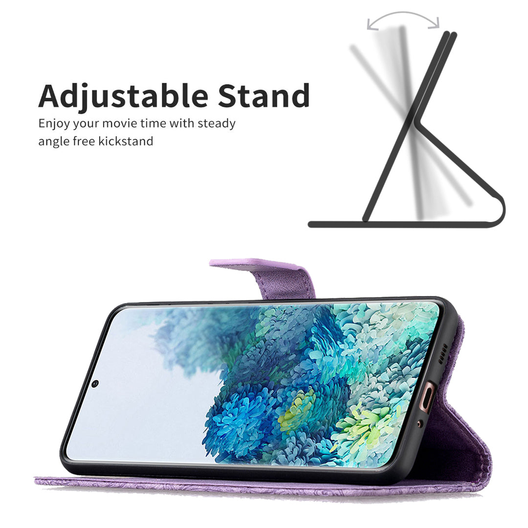 Imprint Butterfly Flower Leather Wallet Shell Case for Samsung Galaxy S20 4G/S20 5G - Purple