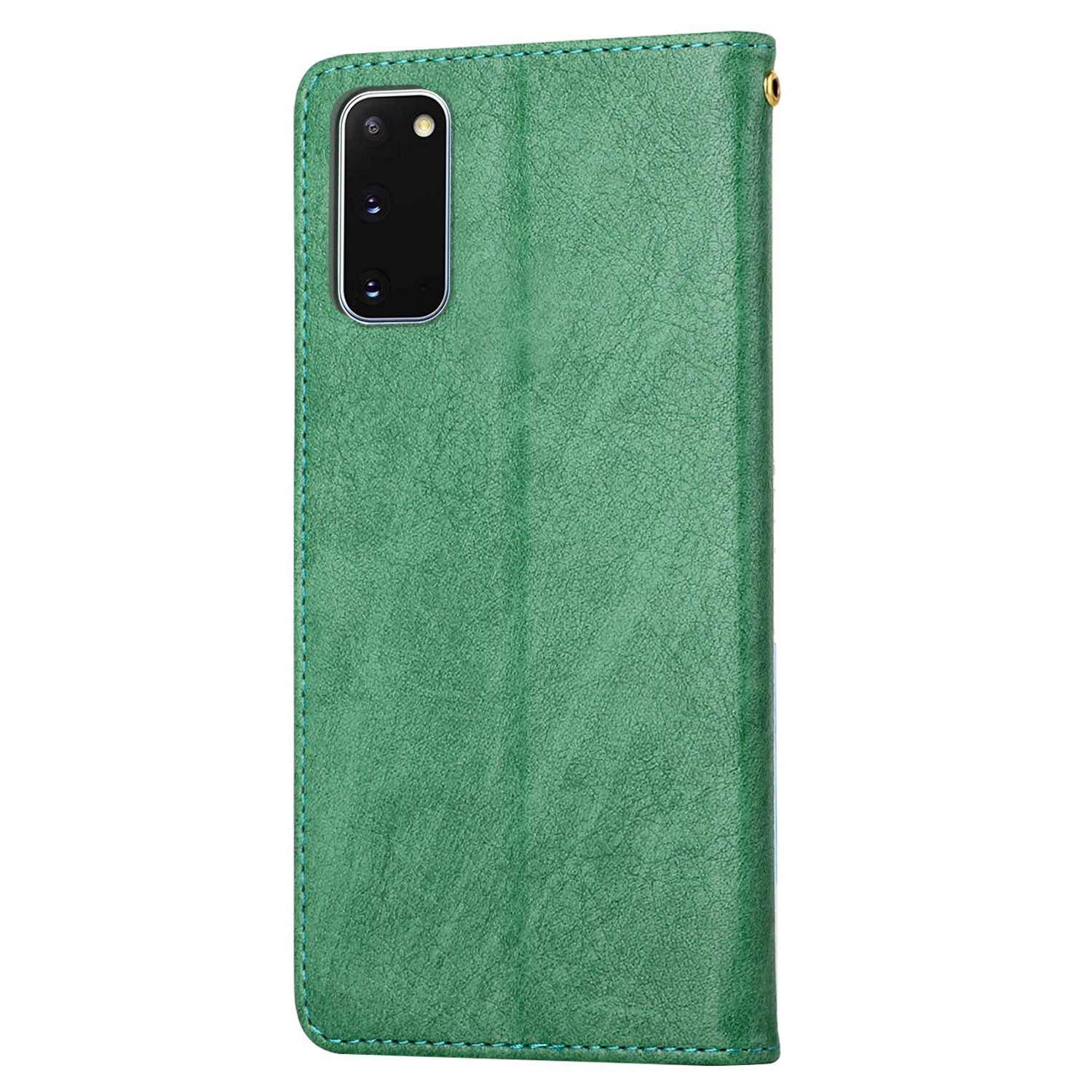 Imprinting Girl Pattern Folio Flip Leather Phone Wallet Case Cover with Stand for Samsung Galaxy S20 4G/S20 5G - Green