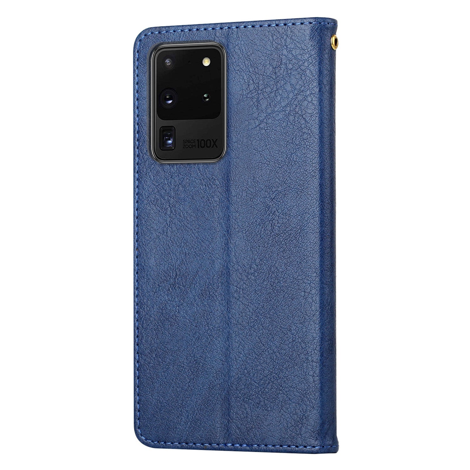 Imprinting Girl Pattern Stand Wallet Design PU Leather Protective Phone Case Shell for Samsung Galaxy S20 Ultra - Blue