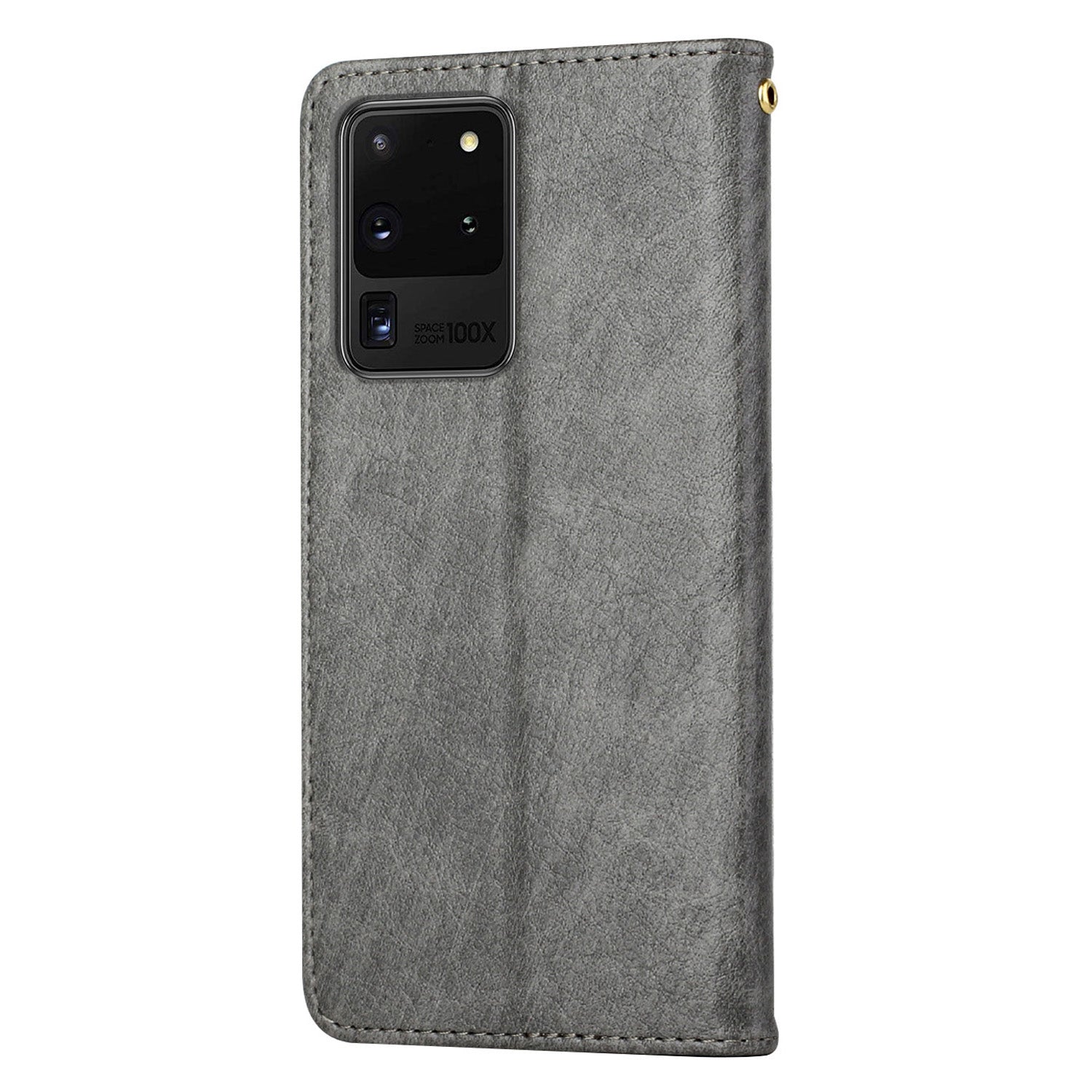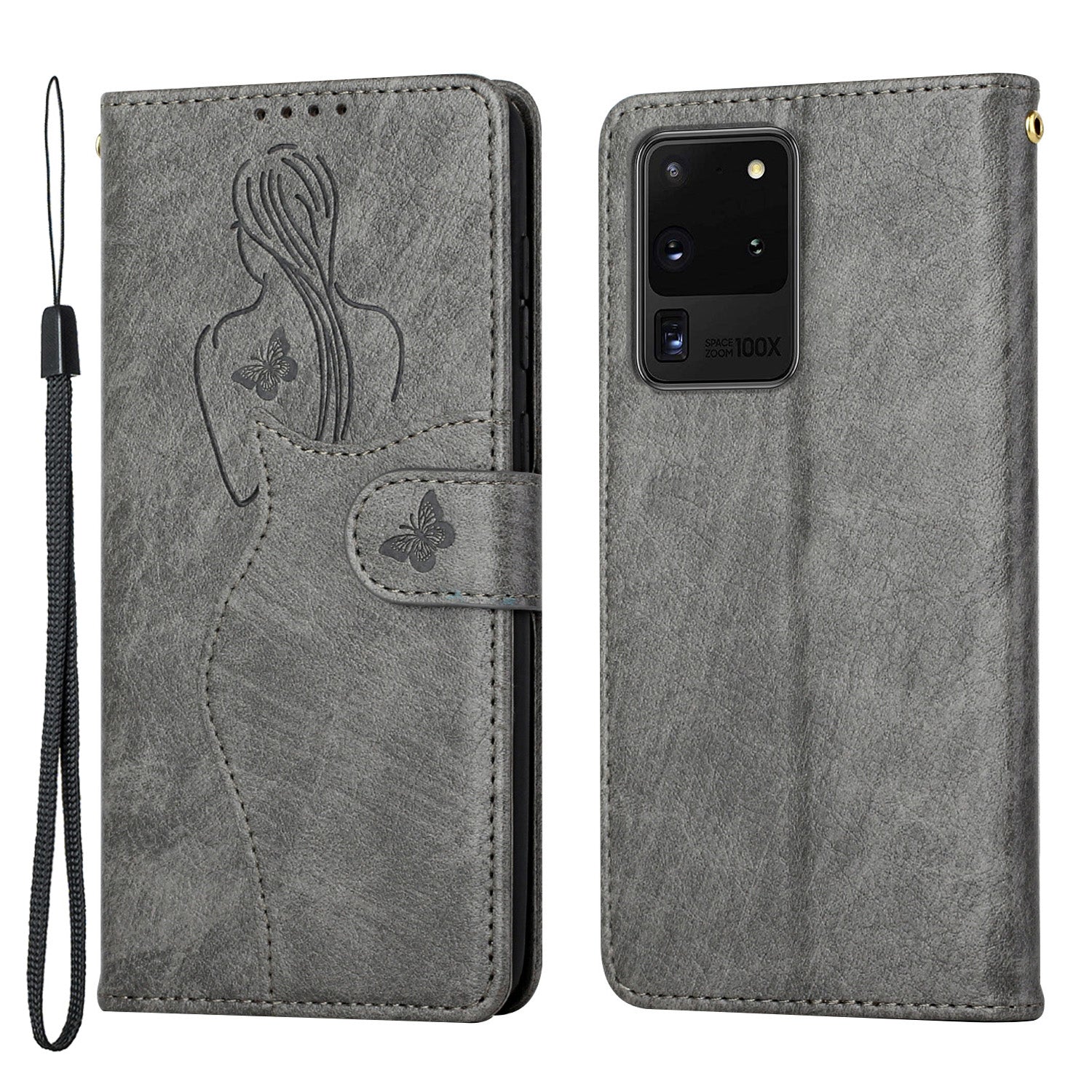 Imprinting Girl Pattern Stand Wallet Design PU Leather Protective Phone Case Shell for Samsung Galaxy S20 Ultra - Grey