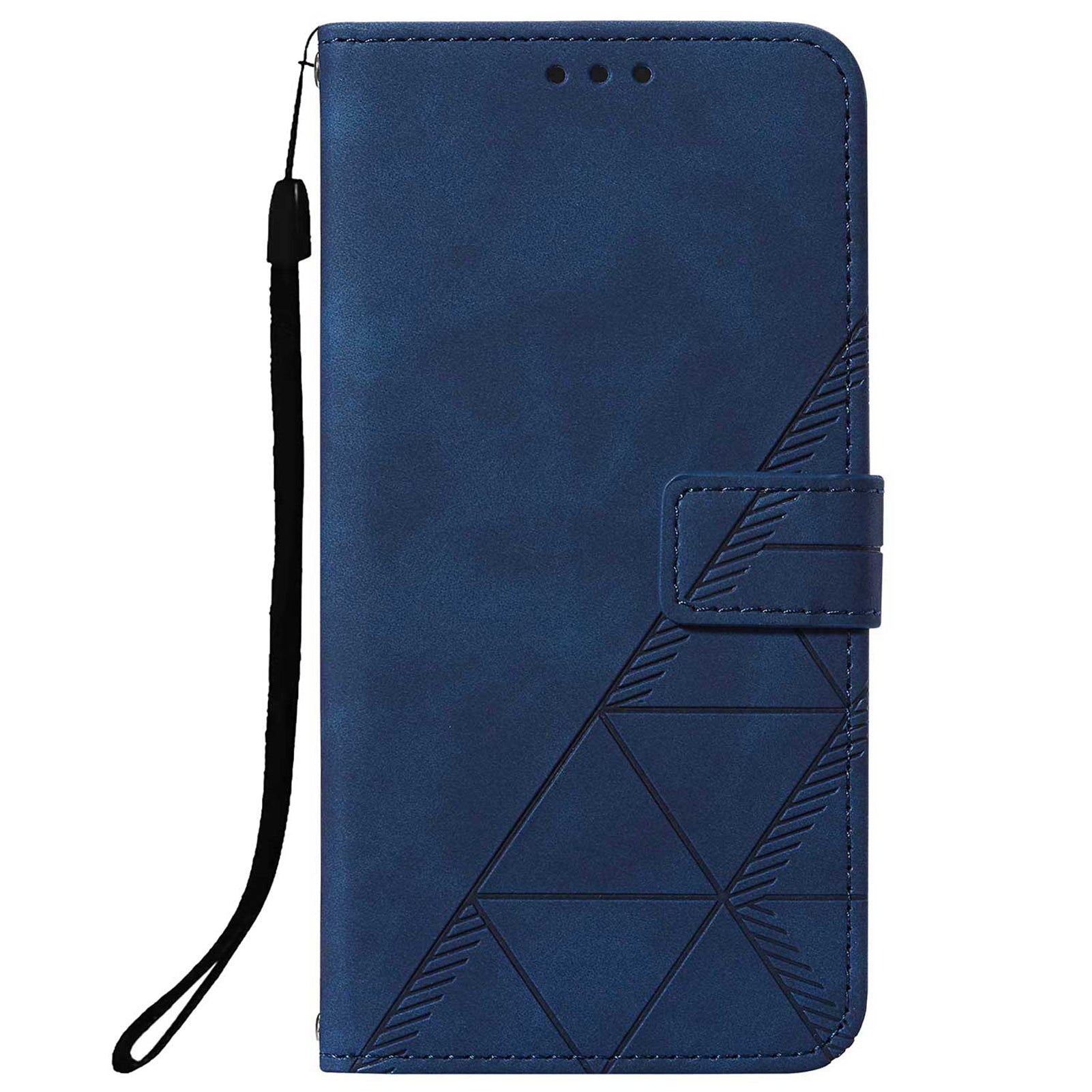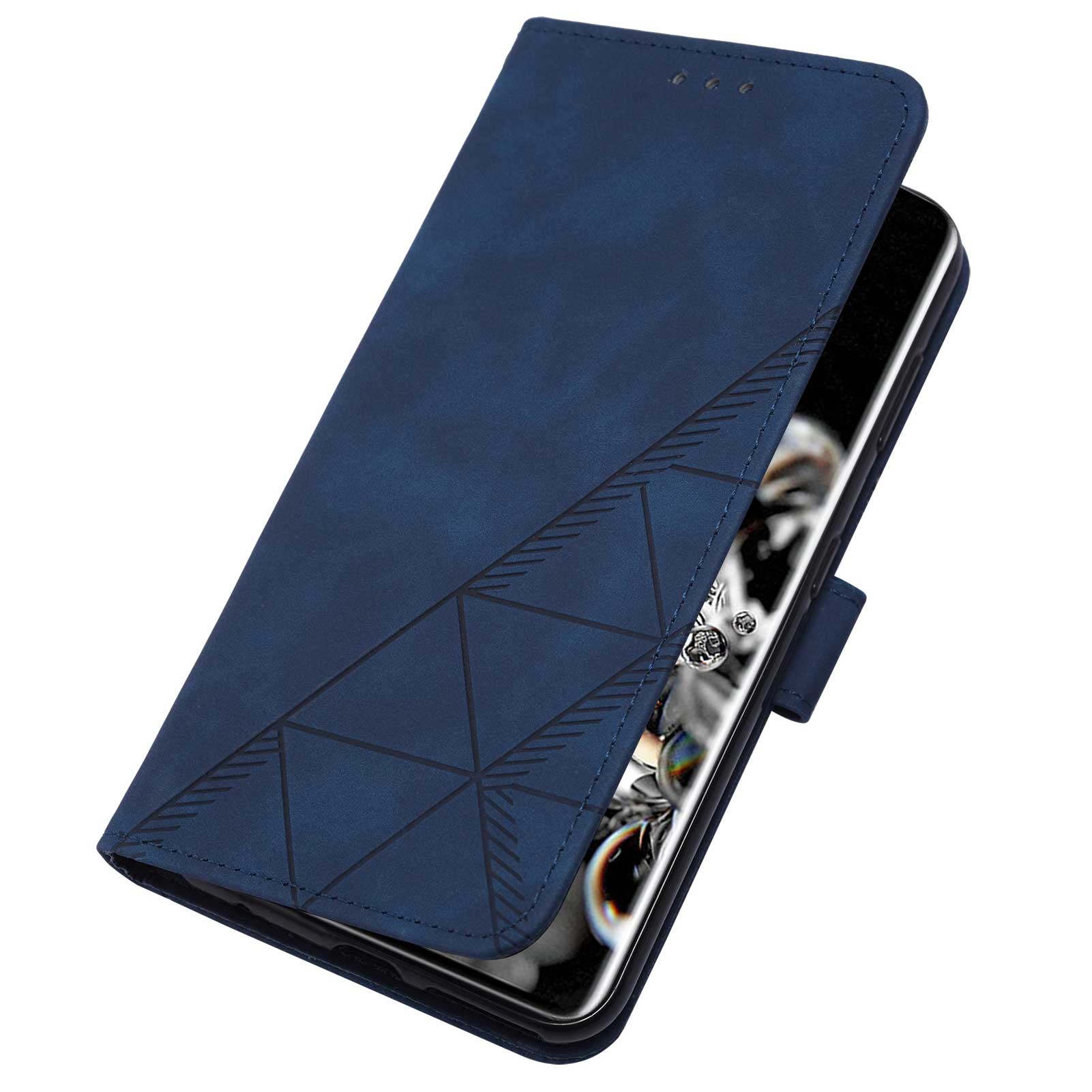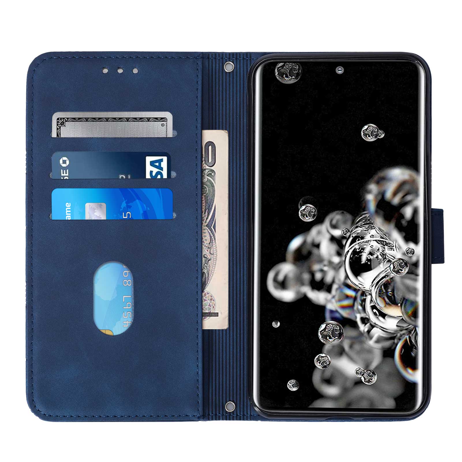 Imprinting Lines PU Leather Folio Flip Wallet Case Stand Magnetic Closure TPU Interior Phone Cover with Strap for Samsung Galaxy S20 Ultra - Sapphire