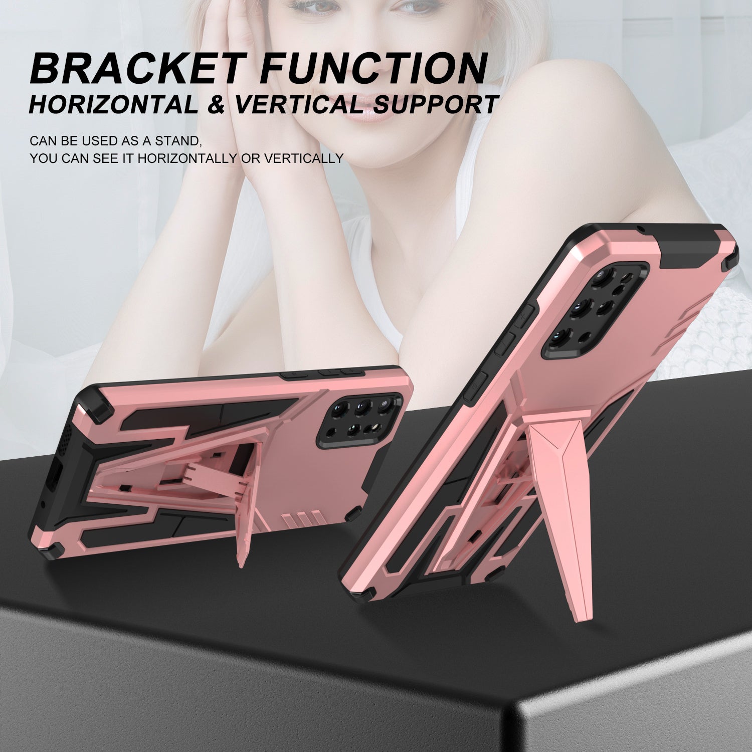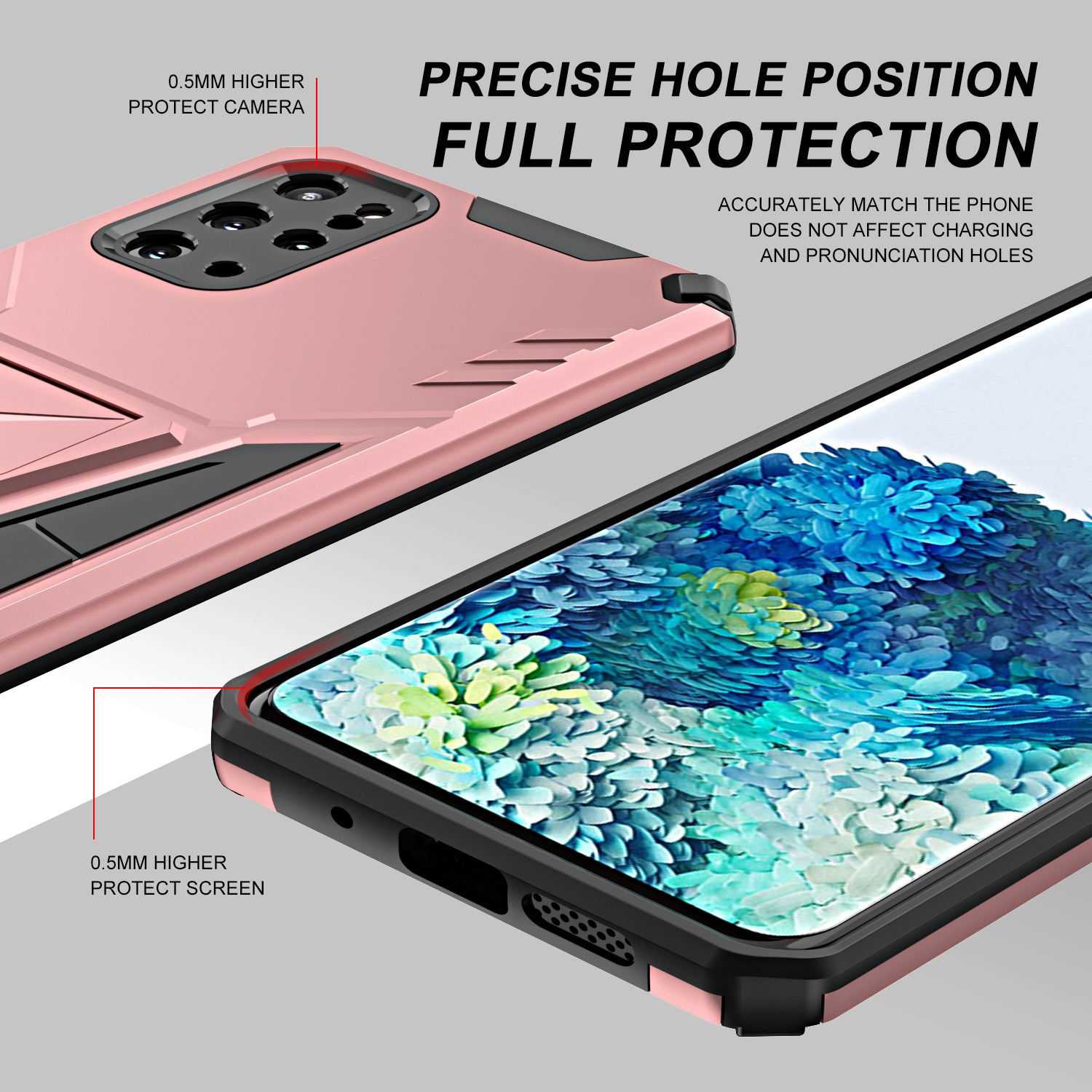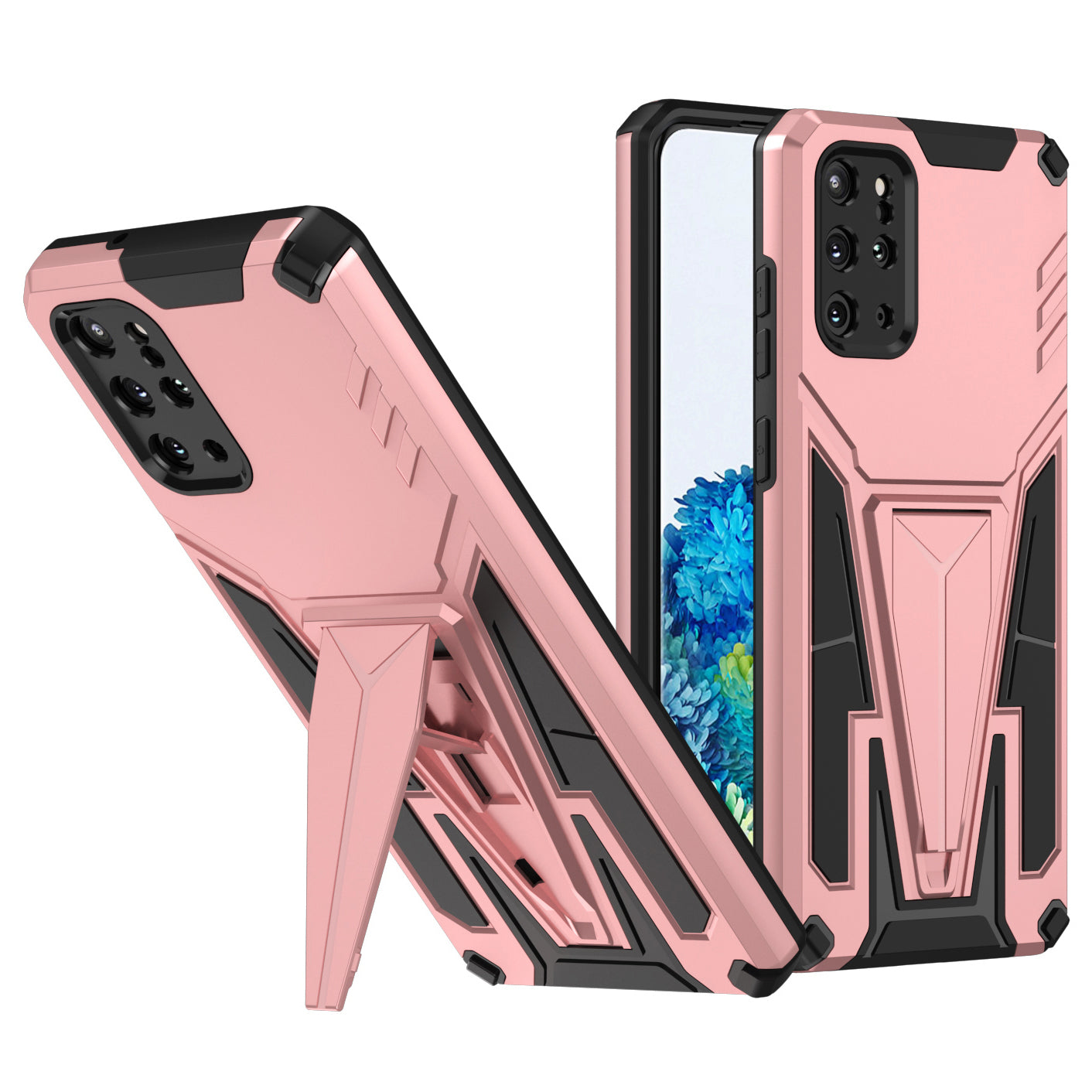 Kickstand Combo Rugged PC + Soft TPU V-Shaped Armor Protective Phone Case for Samsung Galaxy S20 Plus - Rose Gold