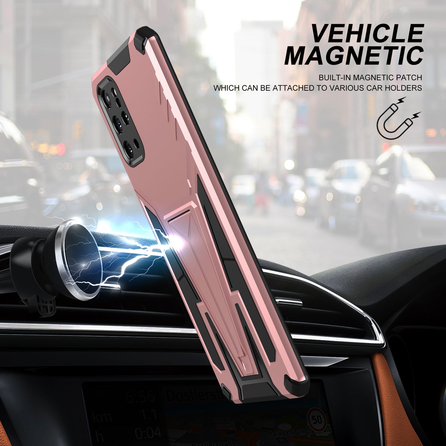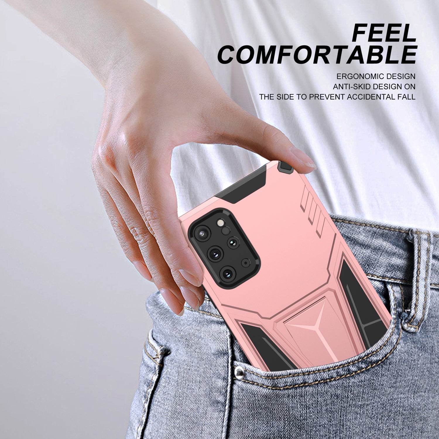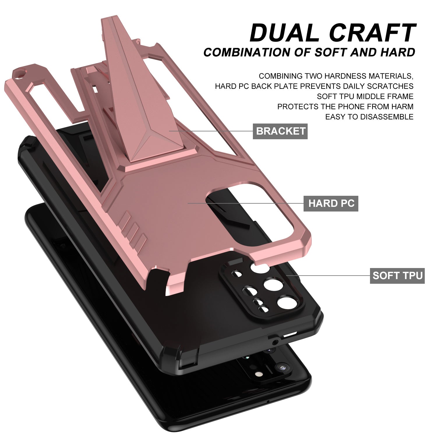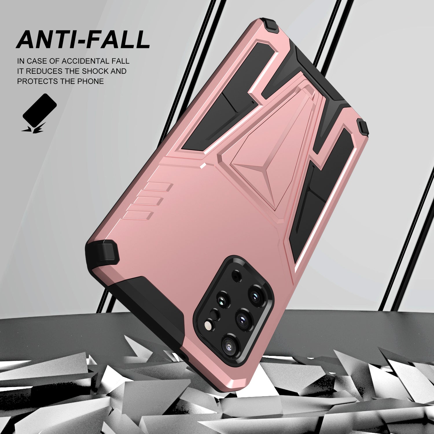 Kickstand Combo Rugged PC + Soft TPU V-Shaped Armor Protective Phone Case for Samsung Galaxy S20 Plus - Rose Gold