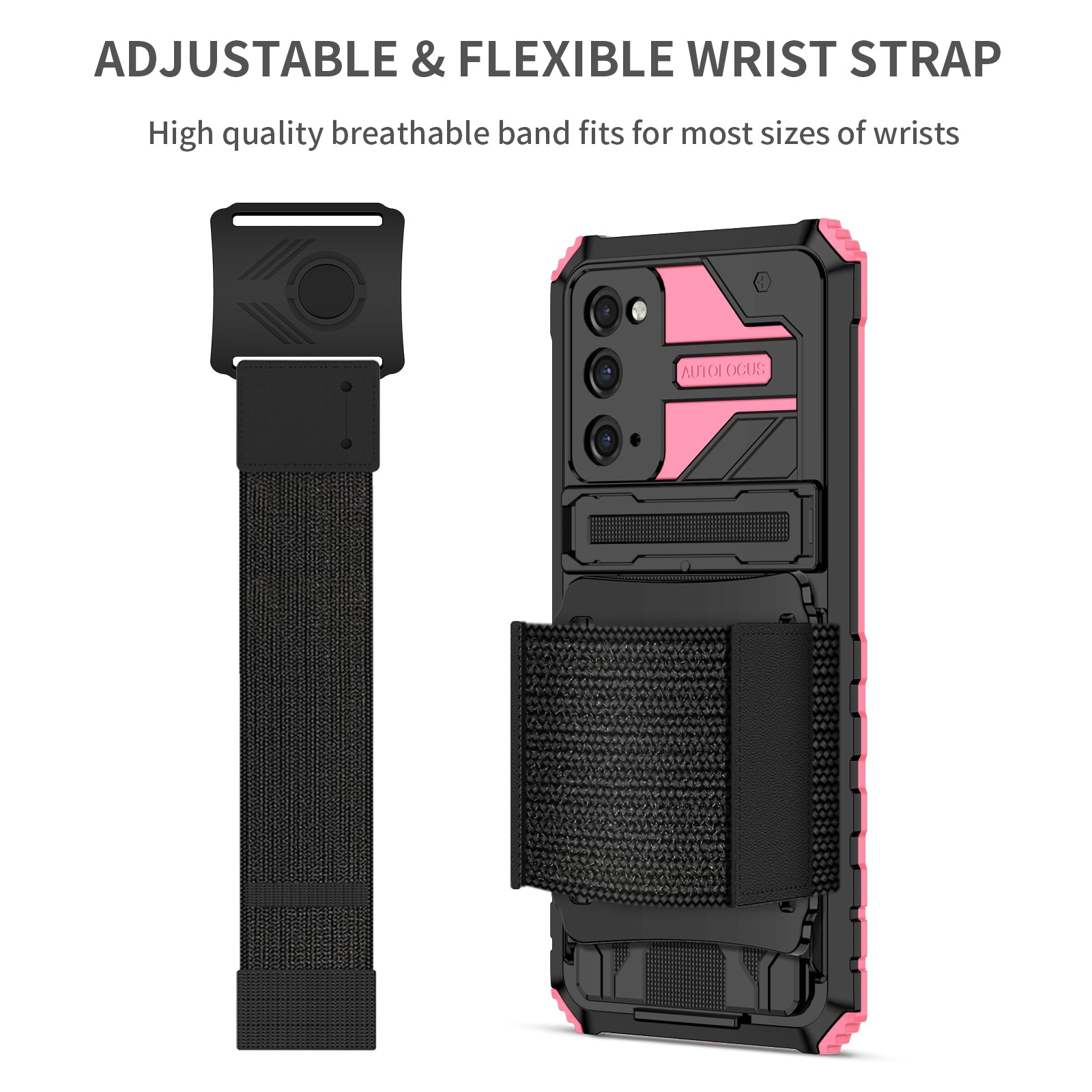 Kickstand Drop-resistant PC + TPU Phone Cover Case with Detachable Adjustable Wristband for Samsung Galaxy S20 FE 2022/S20 FE/S20 FE 5G/S20 Lite - Pink