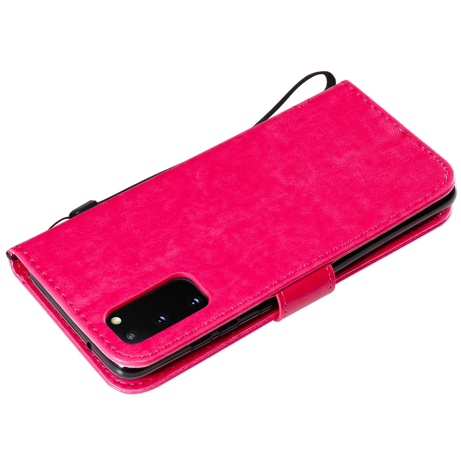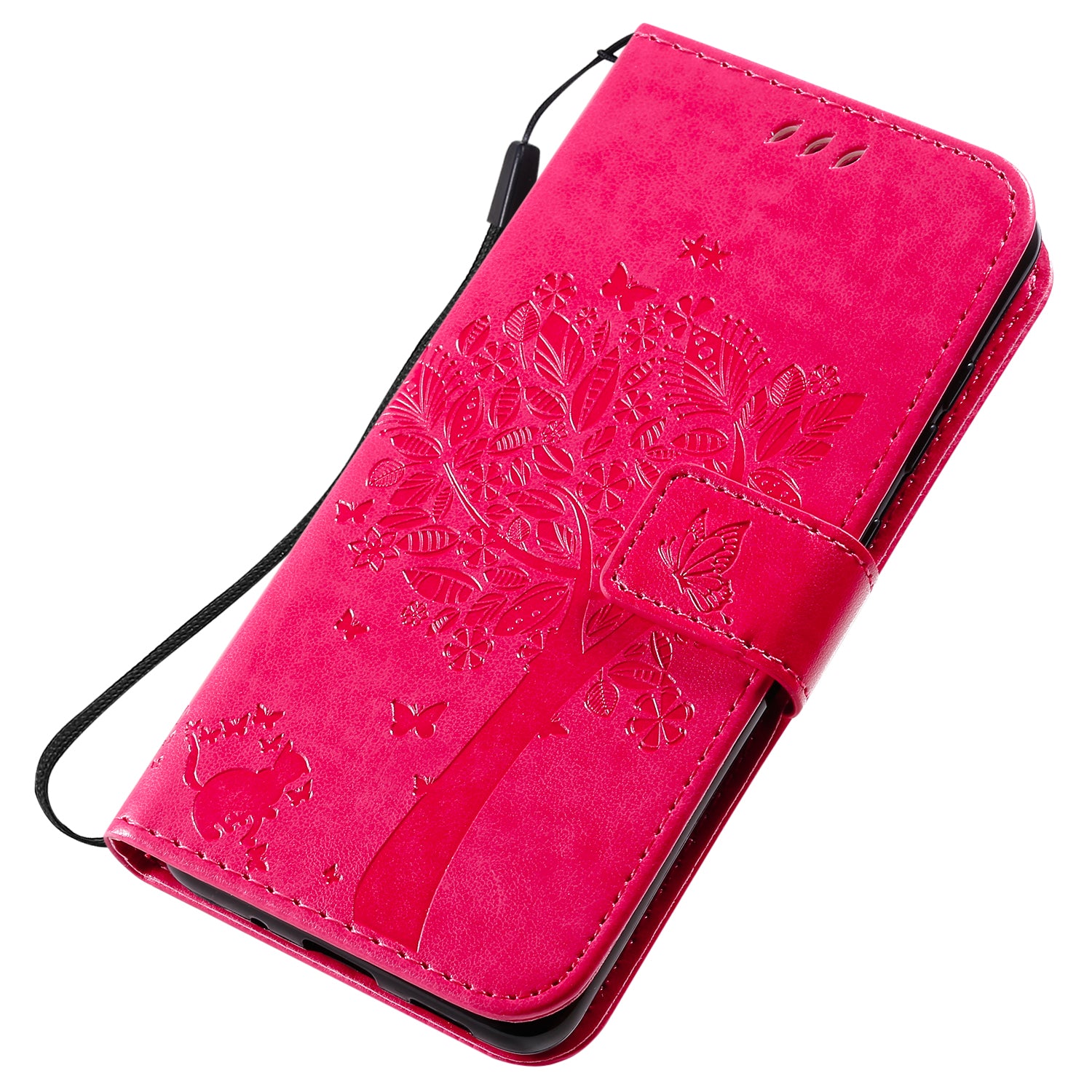 KT Imprinting Flower Series-3 Cat and Tree Imprinting Adjustable Stand Design Leather Cover + TPU Inner Phone Wallet Case for Samsung Galaxy S20 4G/S20 5G - Rose