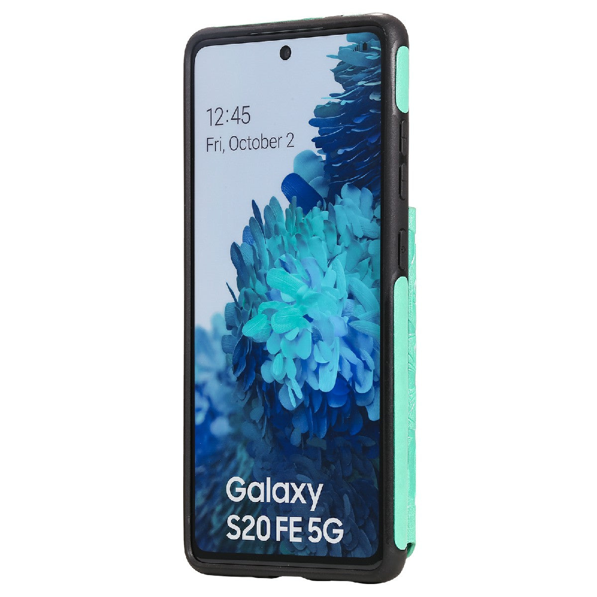 KT Leather Coated Series-9 Mandala Flower Pattern PU Leather+TPU Card Holder Kickstand Case for Samsung Galaxy S20 FE - Green
