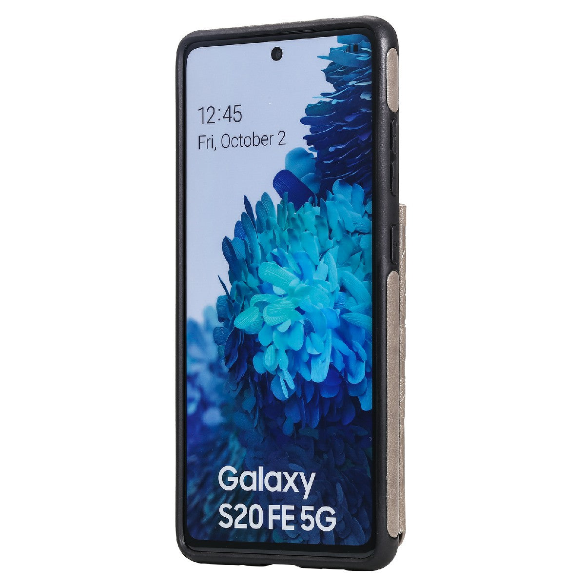 KT Leather Coated Series-9 Mandala Flower Pattern PU Leather+TPU Card Holder Kickstand Case for Samsung Galaxy S20 FE - Grey
