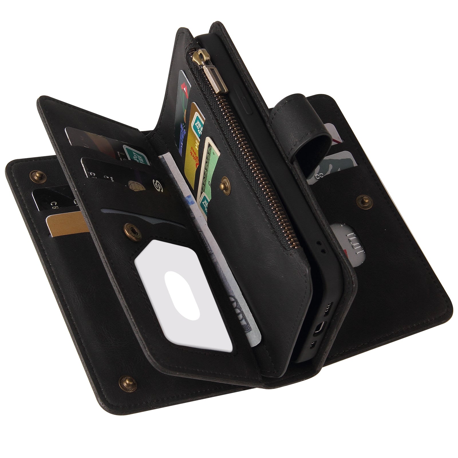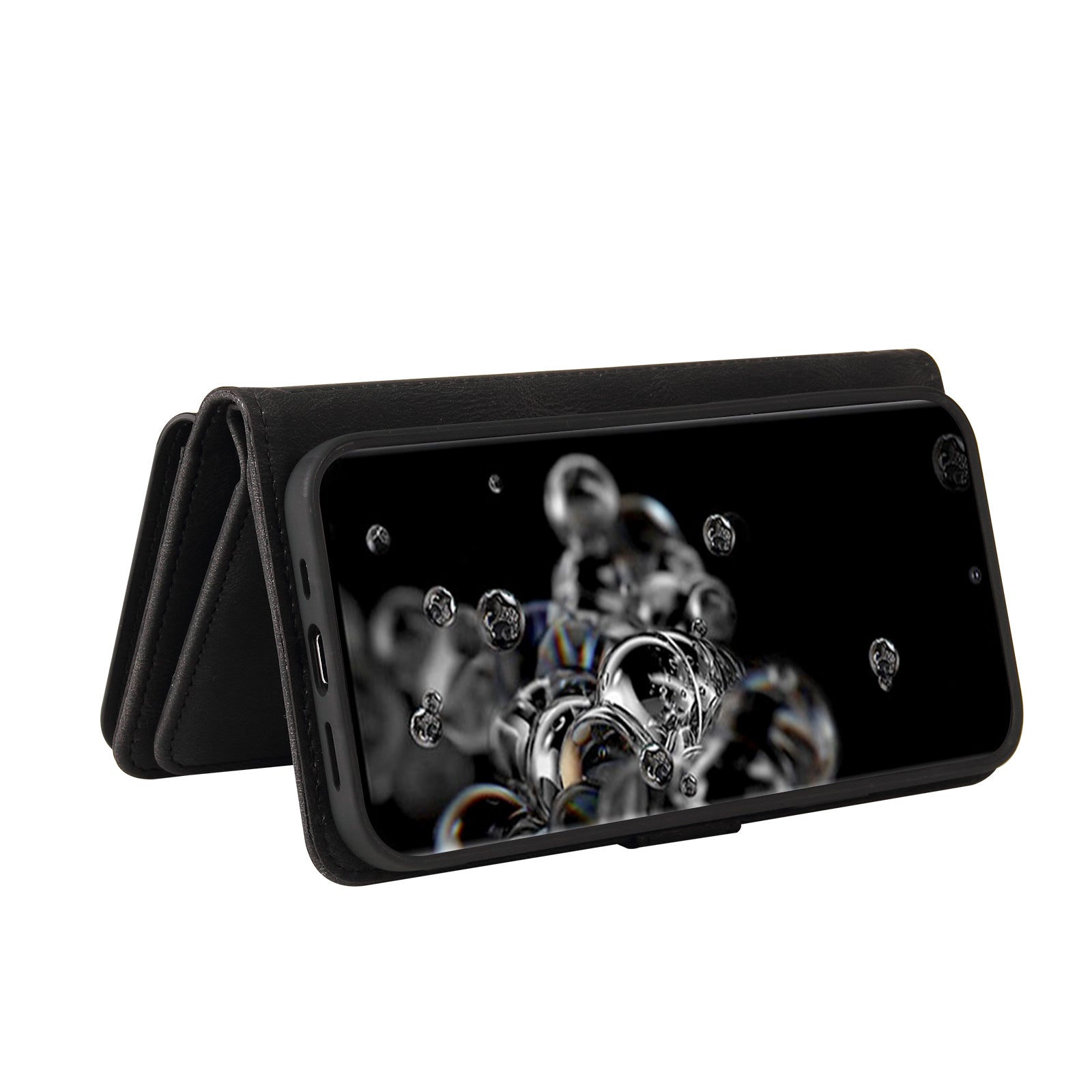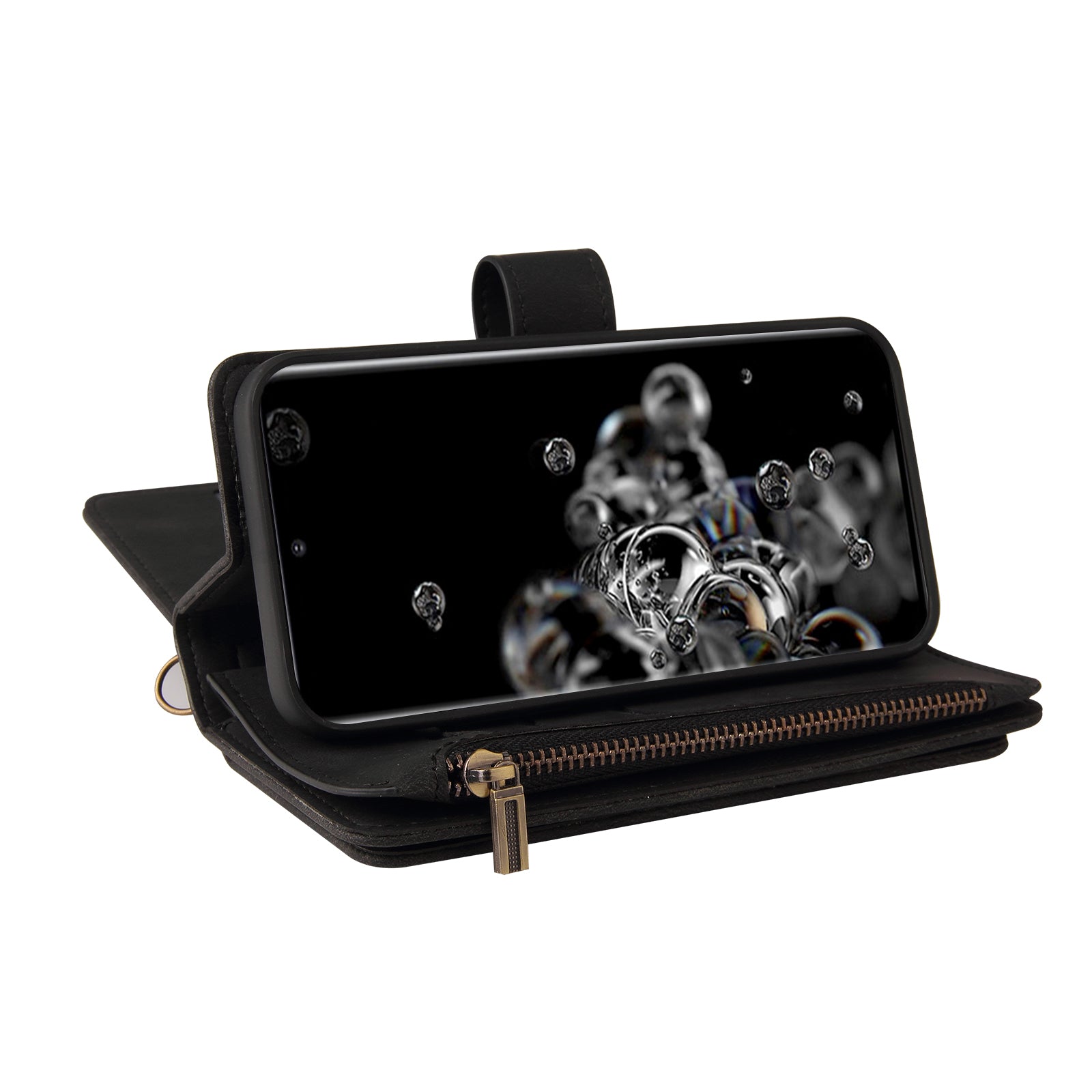 KT Multi-functional Series-2 Multiple Card Slots Skin-touch Feel Leather Flip Case for Samsung Galaxy S20 Ultra with Zipper Pocket Dustproof Phone Cover - Black