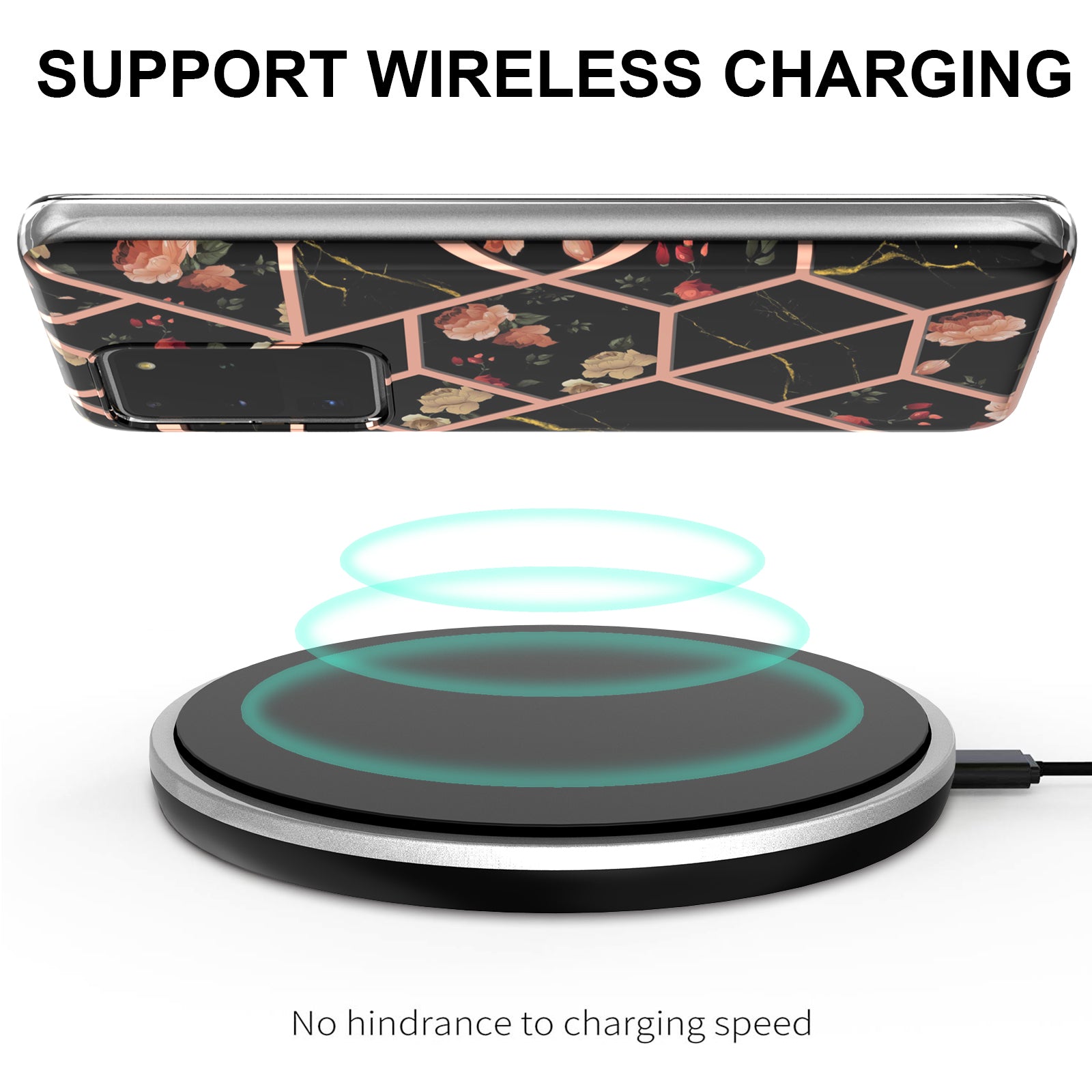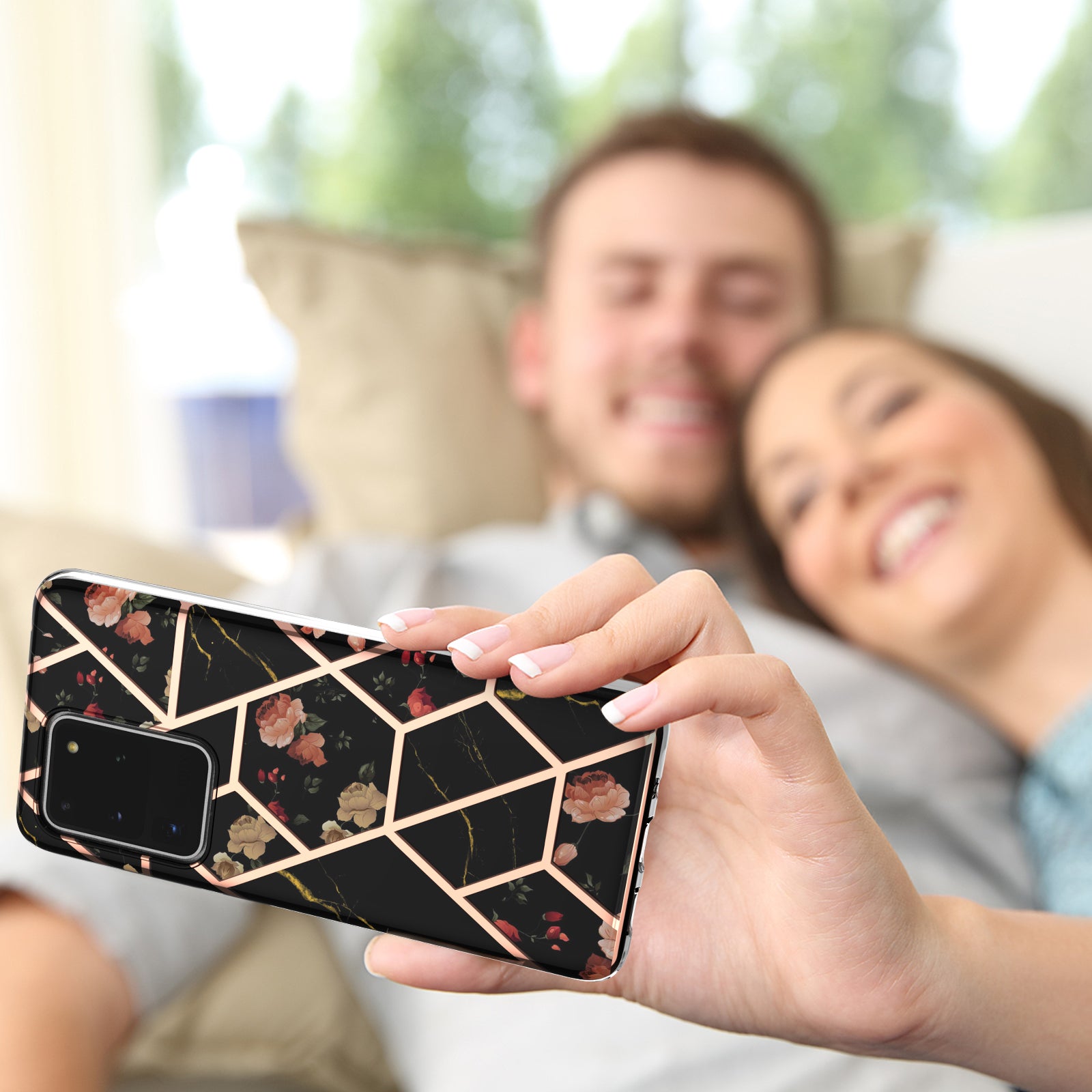 Light Slim Marble Design Electroplating Skin Touch IMD IML Soft TPU Phone Case Cover for Samsung Galaxy S20 Ultra - Black Flowers