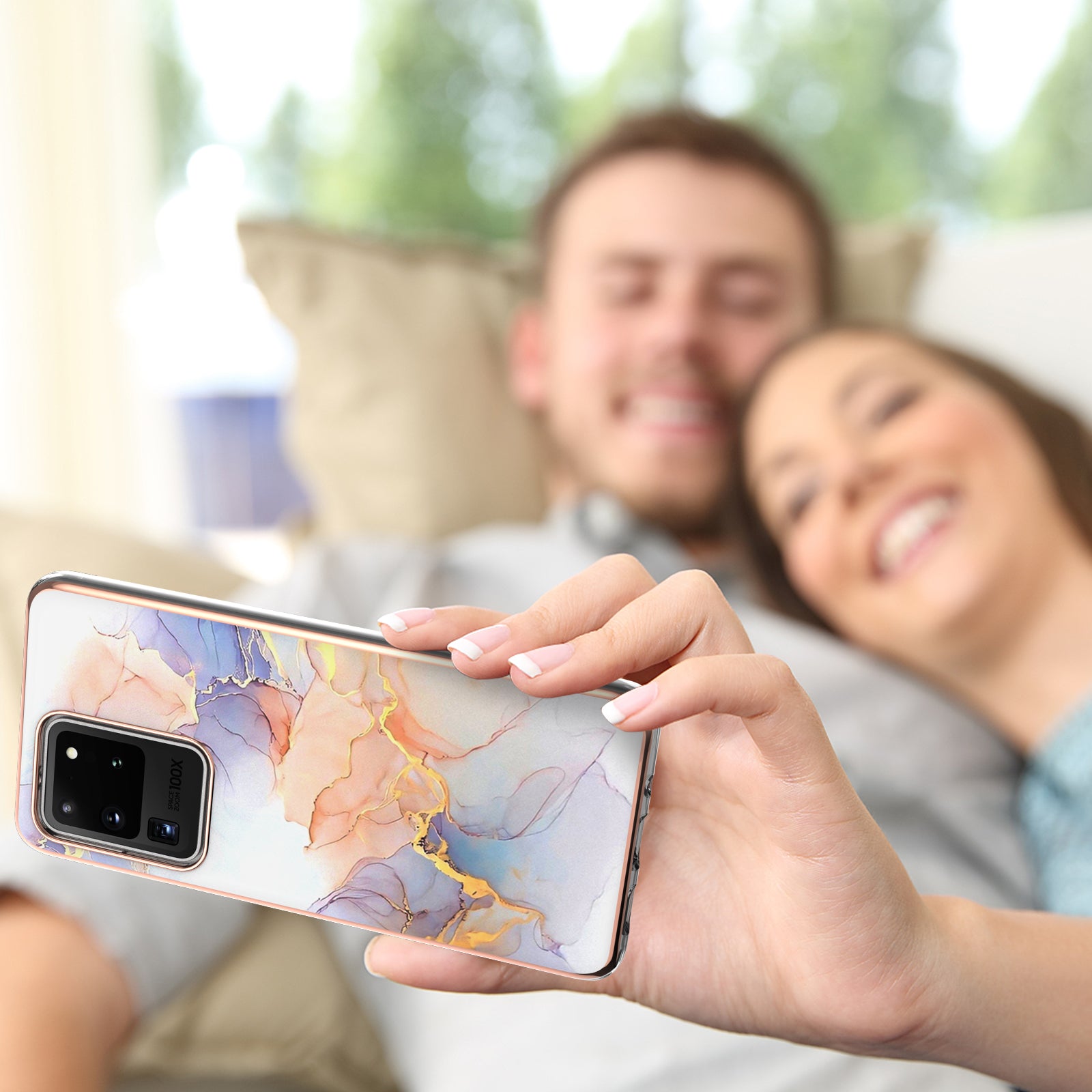 Light Slim Marble Design Electroplating Skin Touch IMD IML Soft TPU Phone Case Cover for Samsung Galaxy S20 Ultra - Milky Way Marble White