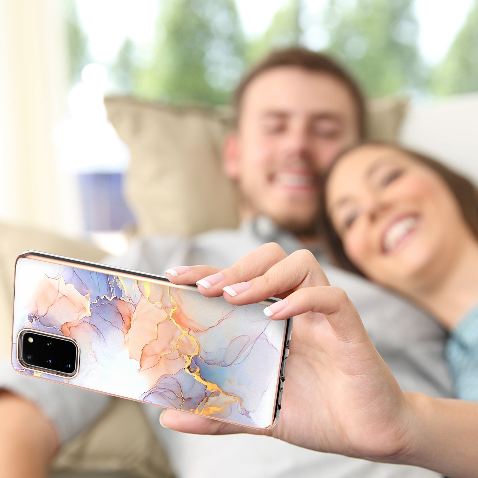 Lightweight Marble Design Electroplating Support Wireless Charging IMD IML Soft TPU Phone Case Cover for Samsung Galaxy S20 Plus 4G/5G - Milky Way Marble White