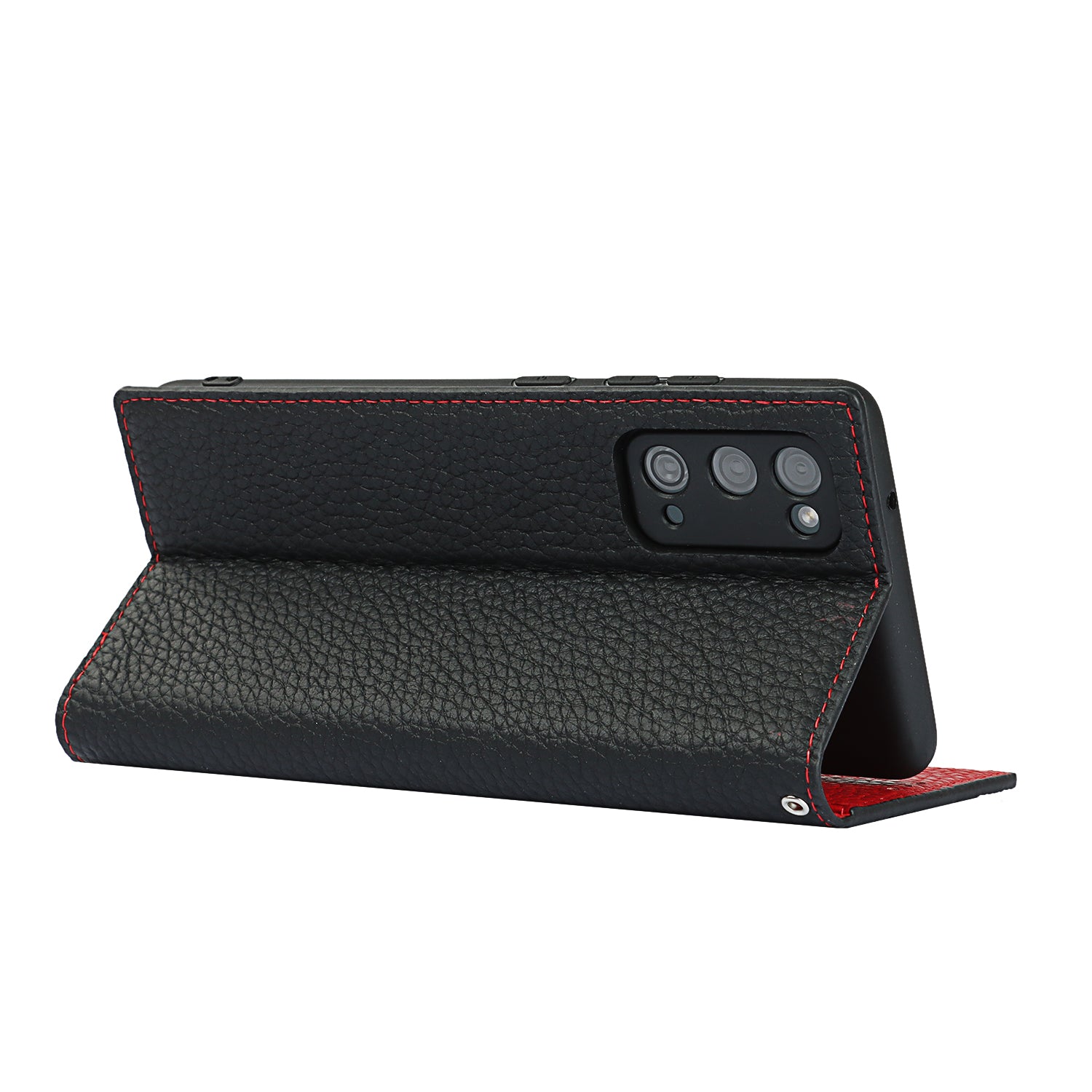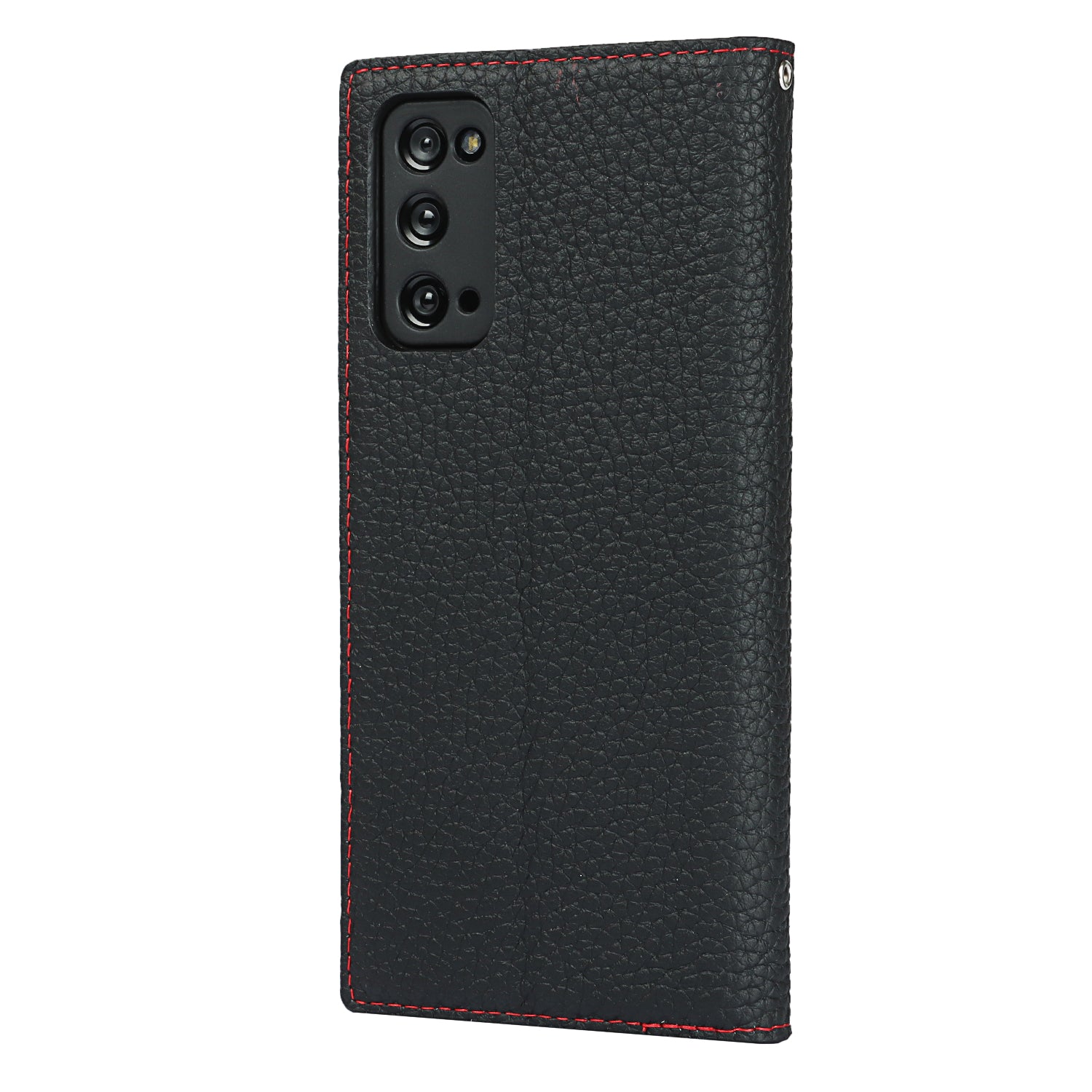 Litchi Texture Stand Genuine Leather Case with Strap for Samsung Galaxy S20 FE/S20 FE 5G/S20 Lite/S20 FE 2022 - Black