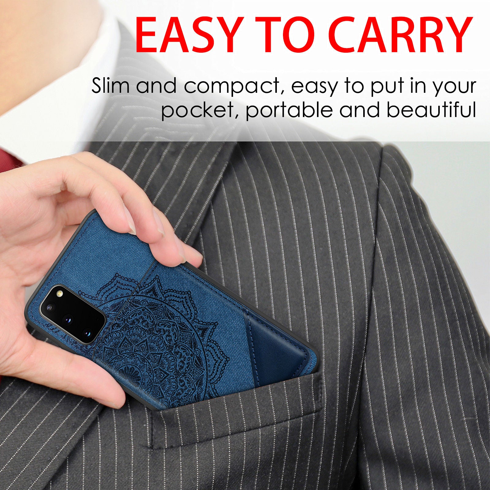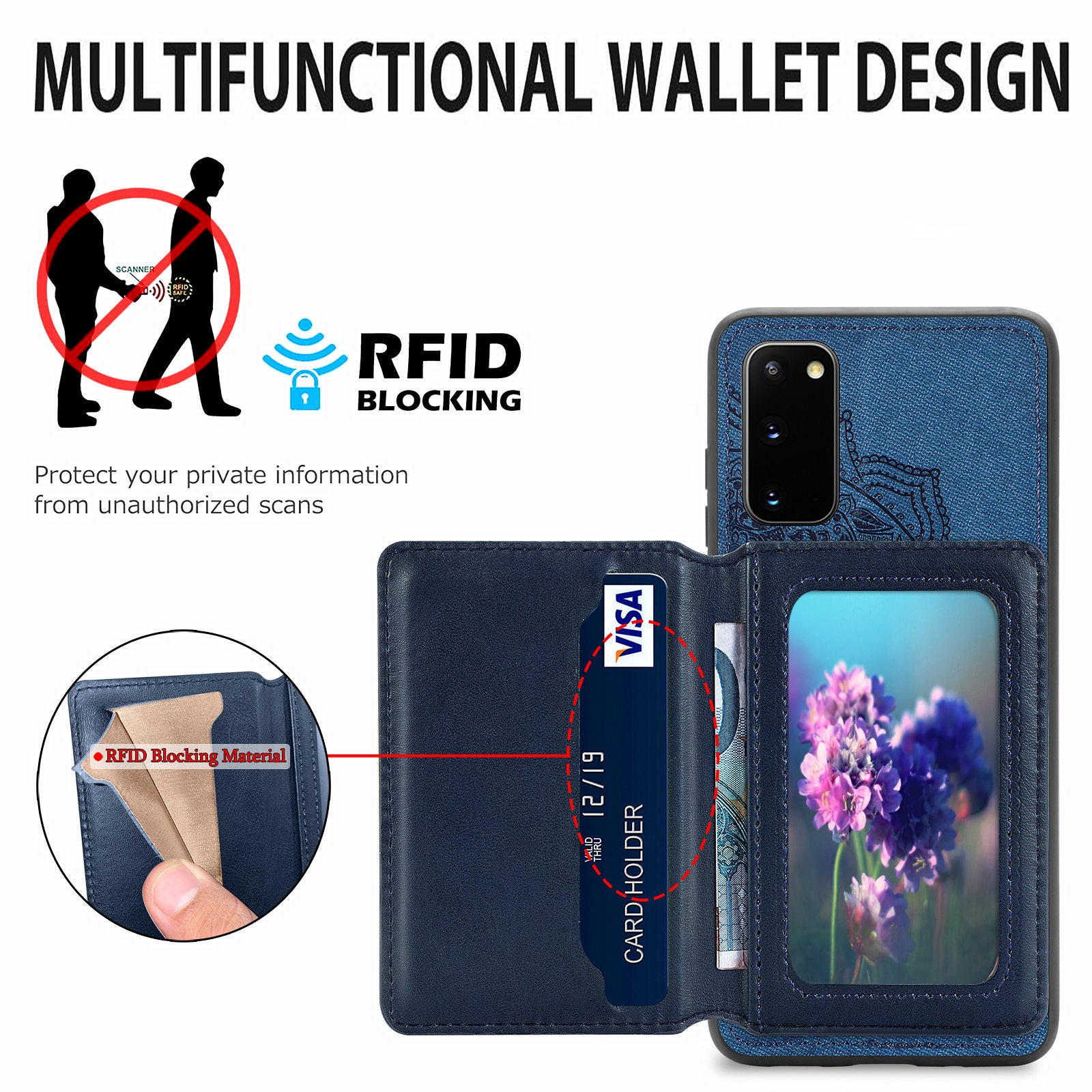 Magnetic Auto-absorbed Kickstand Leather Coated Phone Case Cover with Imprinted Mandala Flower for Samsung Galaxy S20 4G/S20 5G - Blue