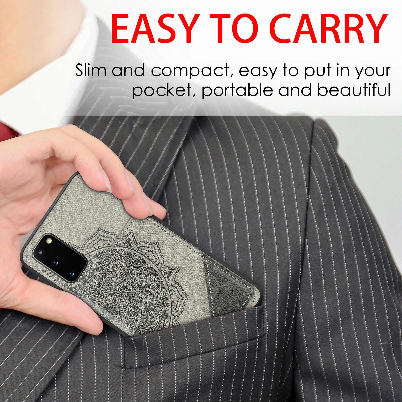 Magnetic Auto-absorbed Kickstand Leather Coated Phone Case Cover with Imprinted Mandala Flower for Samsung Galaxy S20 4G/S20 5G - Grey