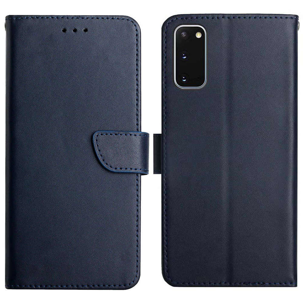 Magnetic Closure Nappa Texture Case Wallet Genuine Leather Phone Cover Shell with Stand for Samsung Galaxy S20 4G/S20 5G - Blue