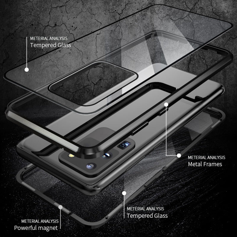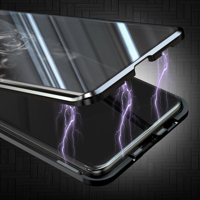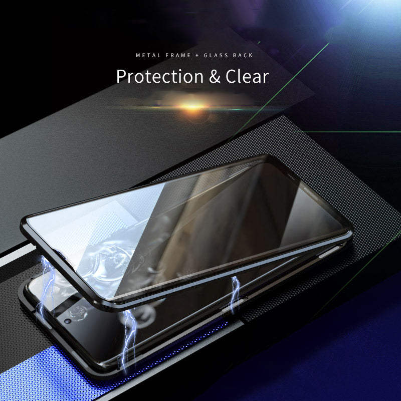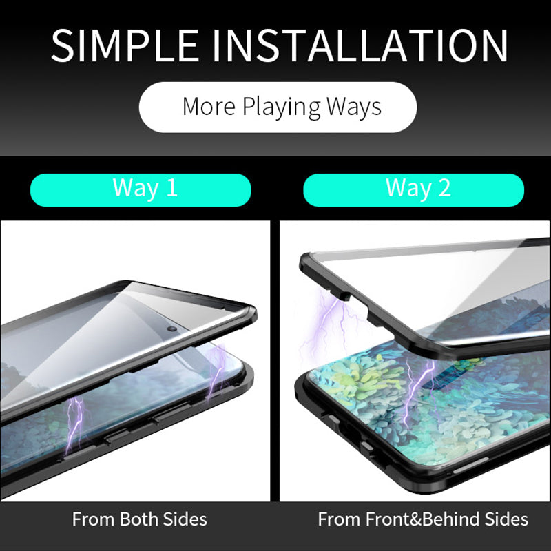 •1 x Full Covering Magnetic Metal Frame + [Front and Back] Tempered Glass Phone Case
