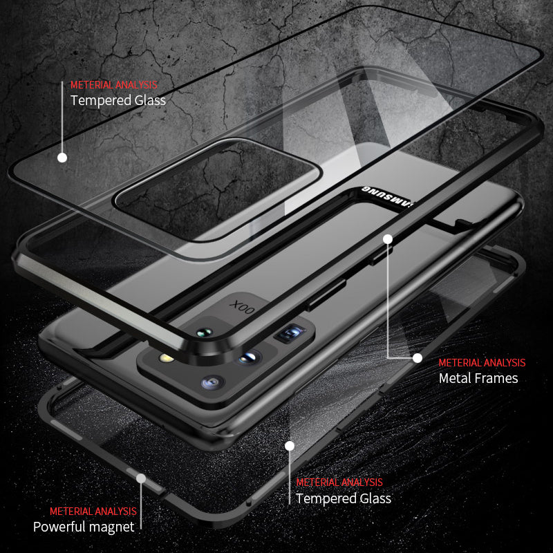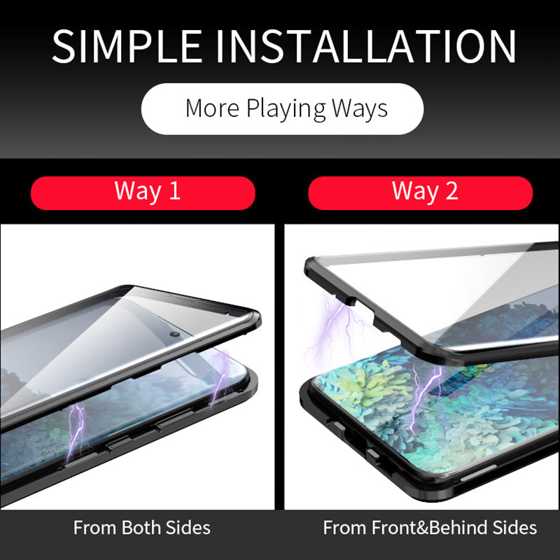 •1 x Magnetic Metal Frame + [Front and Back] Tempered Glass Phone Case