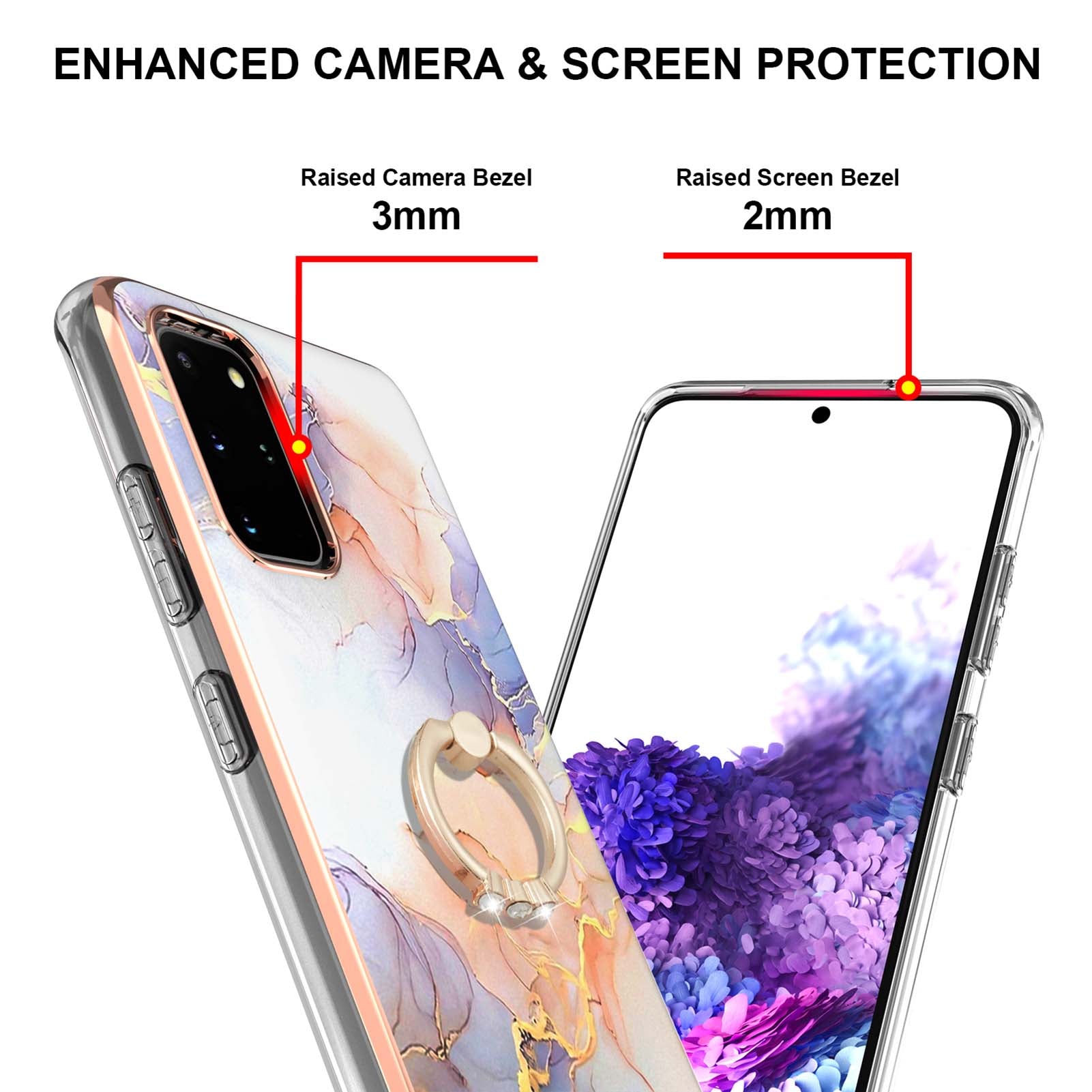 Marble Pattern Design Scratch Resistant Soft TPU IMD Protective Case with Ring Kickstand for Samsung Galaxy S20 Plus 4G/5G - Milky Way Marble White