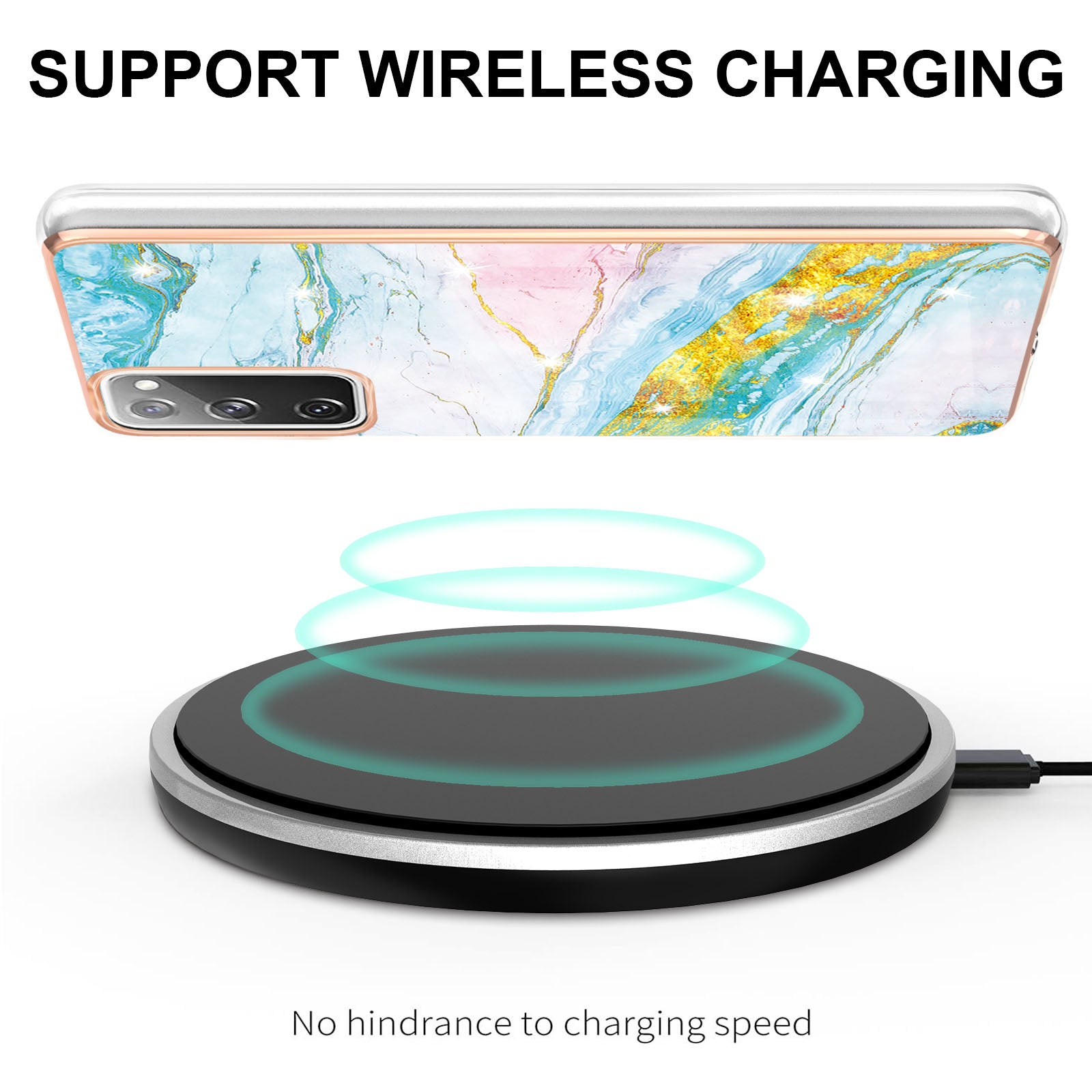 Marble Pattern Electroplated Edge Soft TPU Shockproof Anti-Scratch Protective IMD Case for Samsung Galaxy S20 FE 4G / 5G/S20 Lite/S20 FE 2022 - Green 004