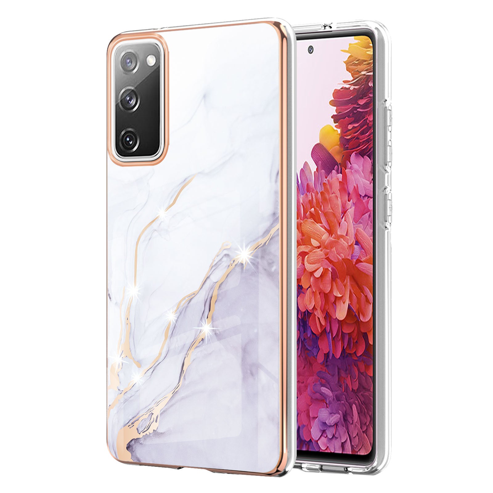 Marble Pattern Electroplated Edge Soft TPU Shockproof Anti-Scratch Protective IMD Case for Samsung Galaxy S20 FE 4G / 5G/S20 Lite/S20 FE 2022 - White 006