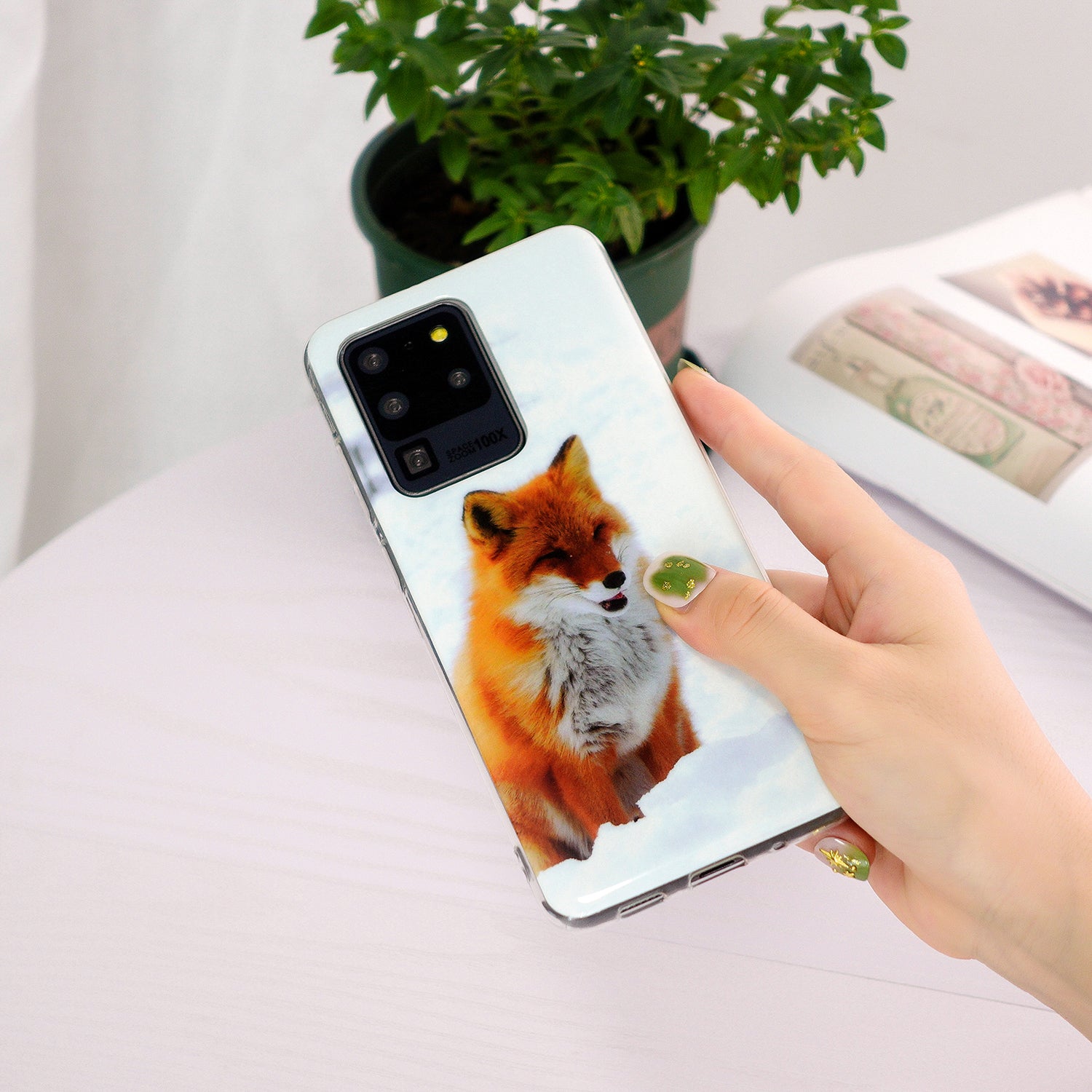 Noctilucent IMD TPU Mobile Phone Protective Case Cover for Samsung Galaxy S20 Ultra 4G/5G - White Fox