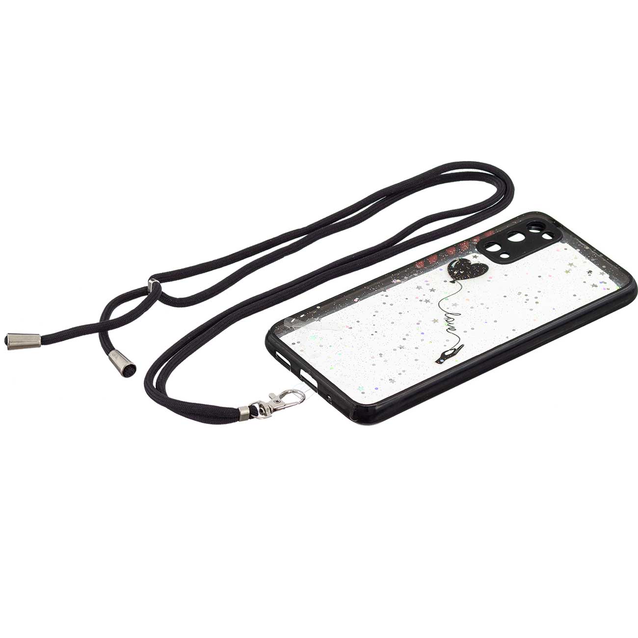 Pattern Printing Anti-scratch Clear Phone Cover Shockproof Phone Case with Lanyard for Samsung Galaxy S20 Lite/S20 FE/S20 FE 5G/S20 FE 2022 - Heart