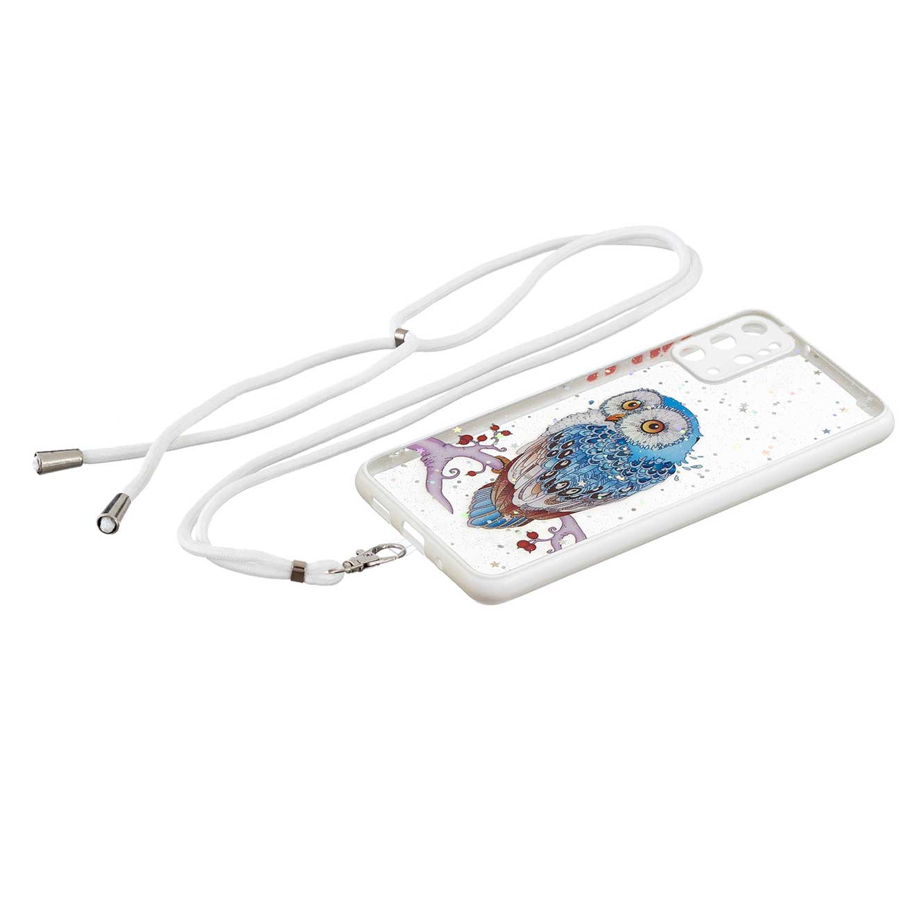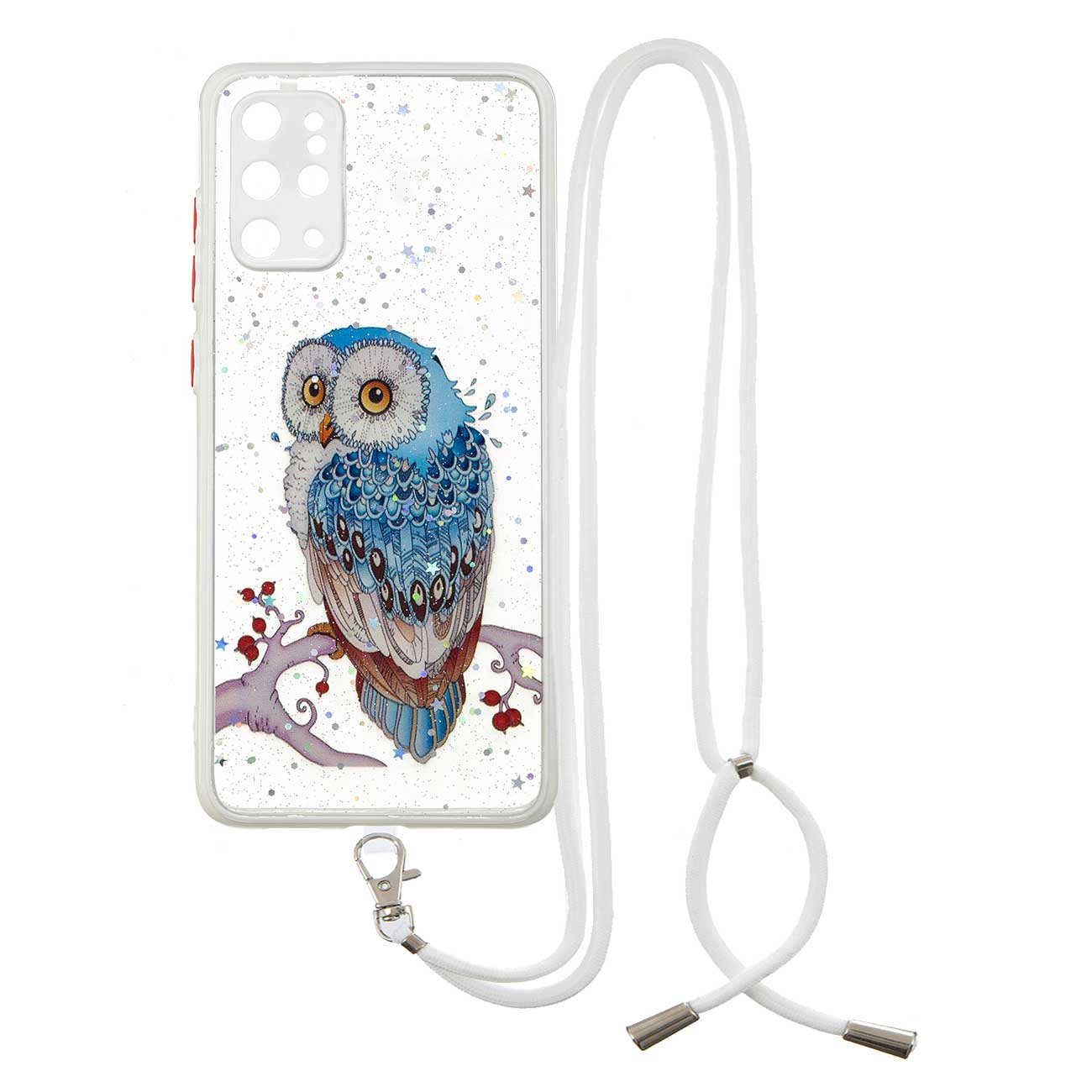 Pattern Printing PC + TPU Hybrid Case with Carrying Strap Clear Phone Shell for Samsung Galaxy S20 Plus 4G/5G - Owl