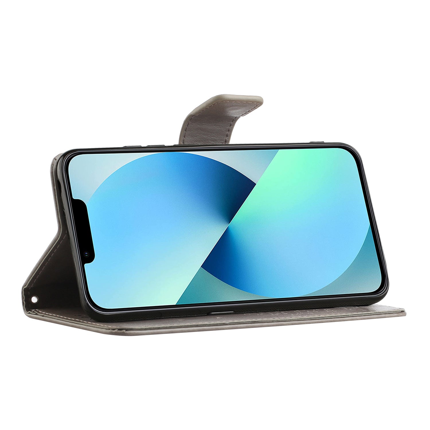 Phone Leather Case for iPhone 15 , Stand Wallet Owl Tree Imprinted Full Protection Phone Cover - Grey
