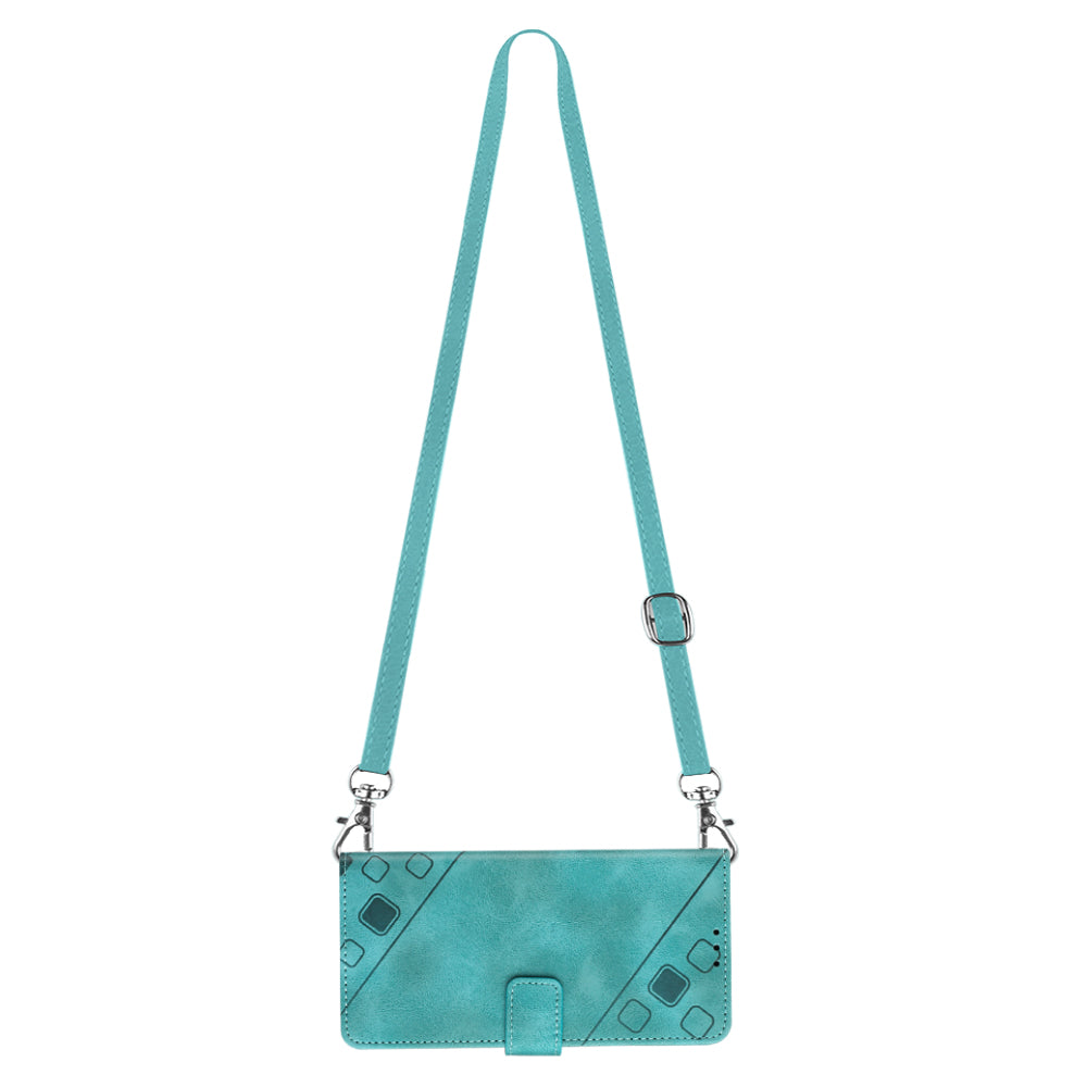 PT005 YB Imprinting Series-7 for iPhone 15 Cell Phone Stand Case Skin-touch Feeling Leather Cover Wallet - Green