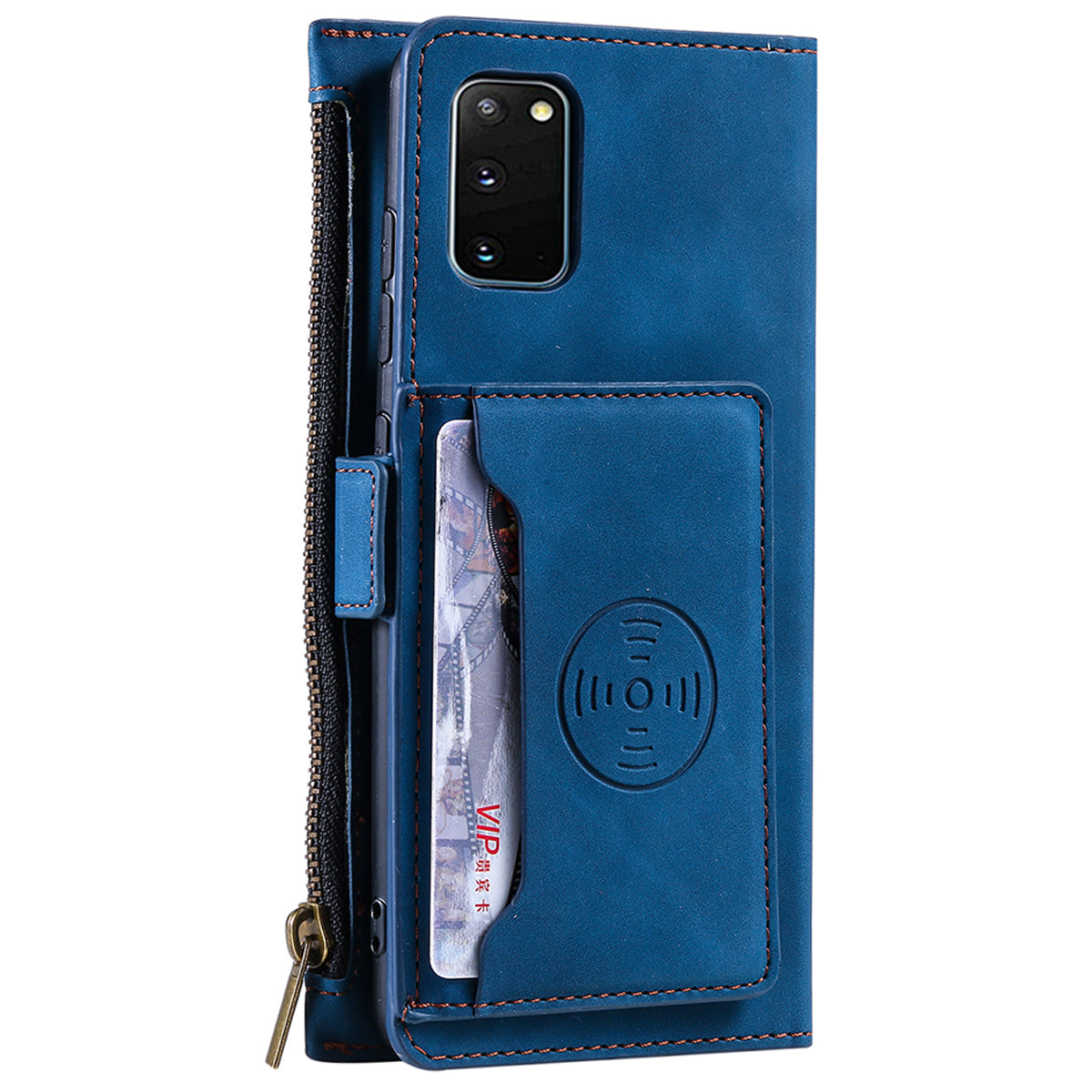 PU Leather Cellphone Protective Case Cover with Multifunctional Zipper Wallet and Kickstand for Samsung Galaxy S20 4G/S20 5G - Blue