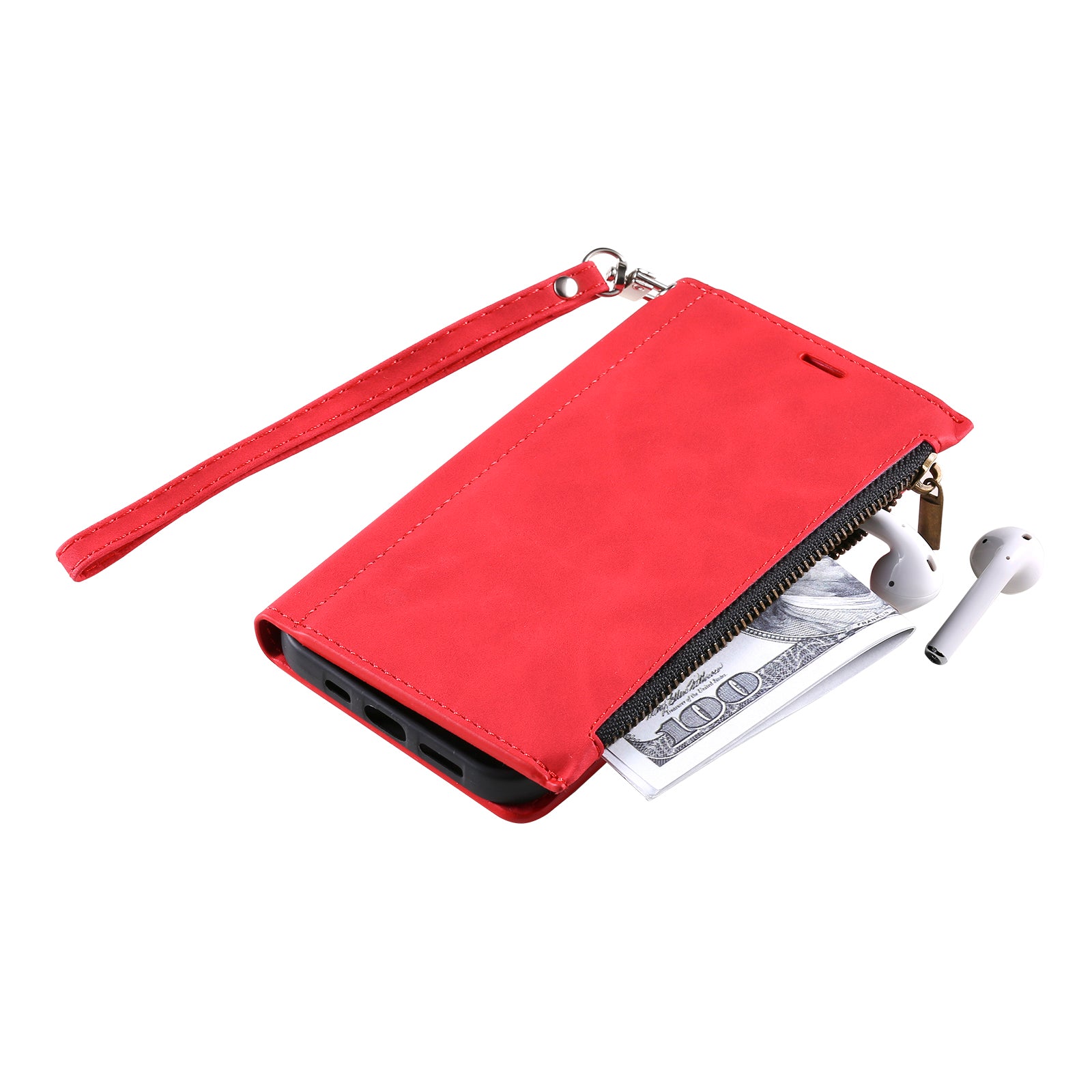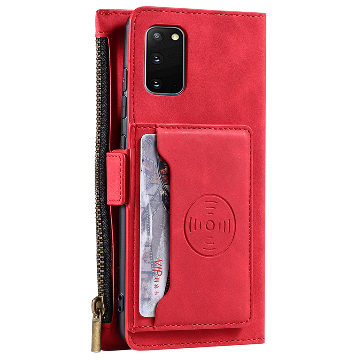 PU Leather Cellphone Protective Case Cover with Multifunctional Zipper Wallet and Kickstand for Samsung Galaxy S20 4G/S20 5G - Red