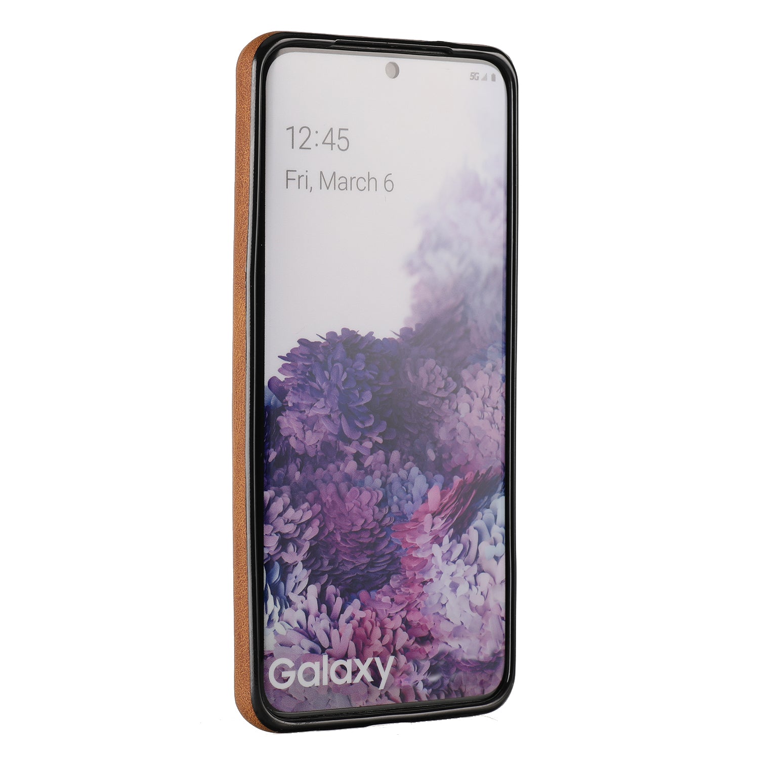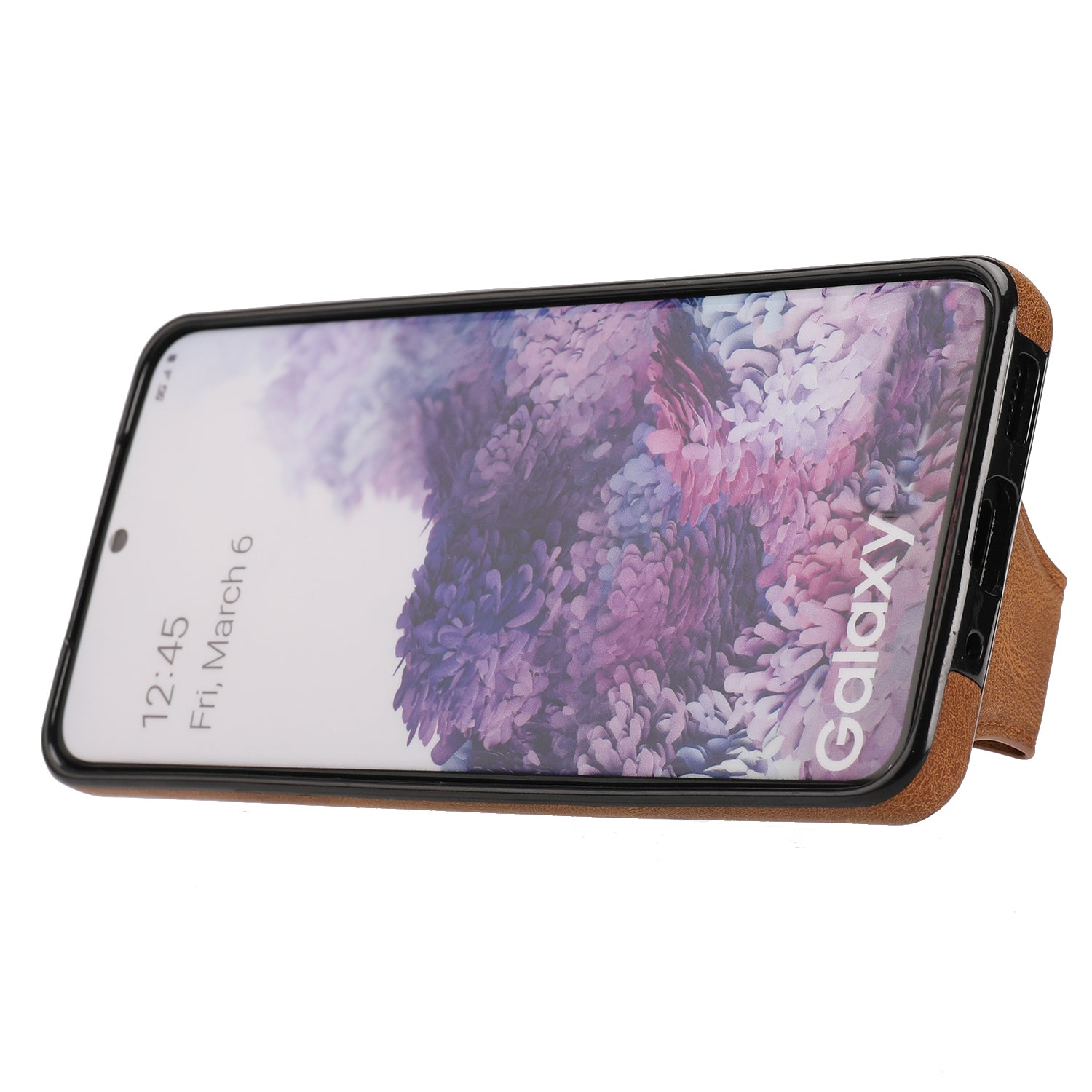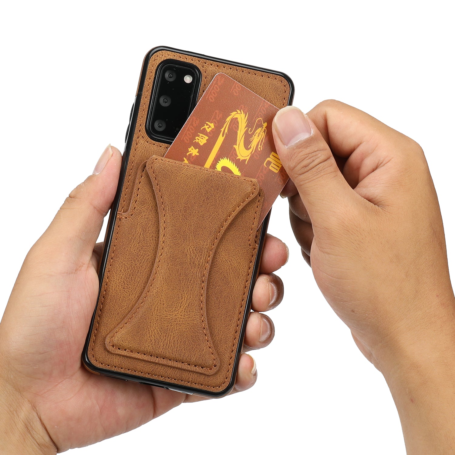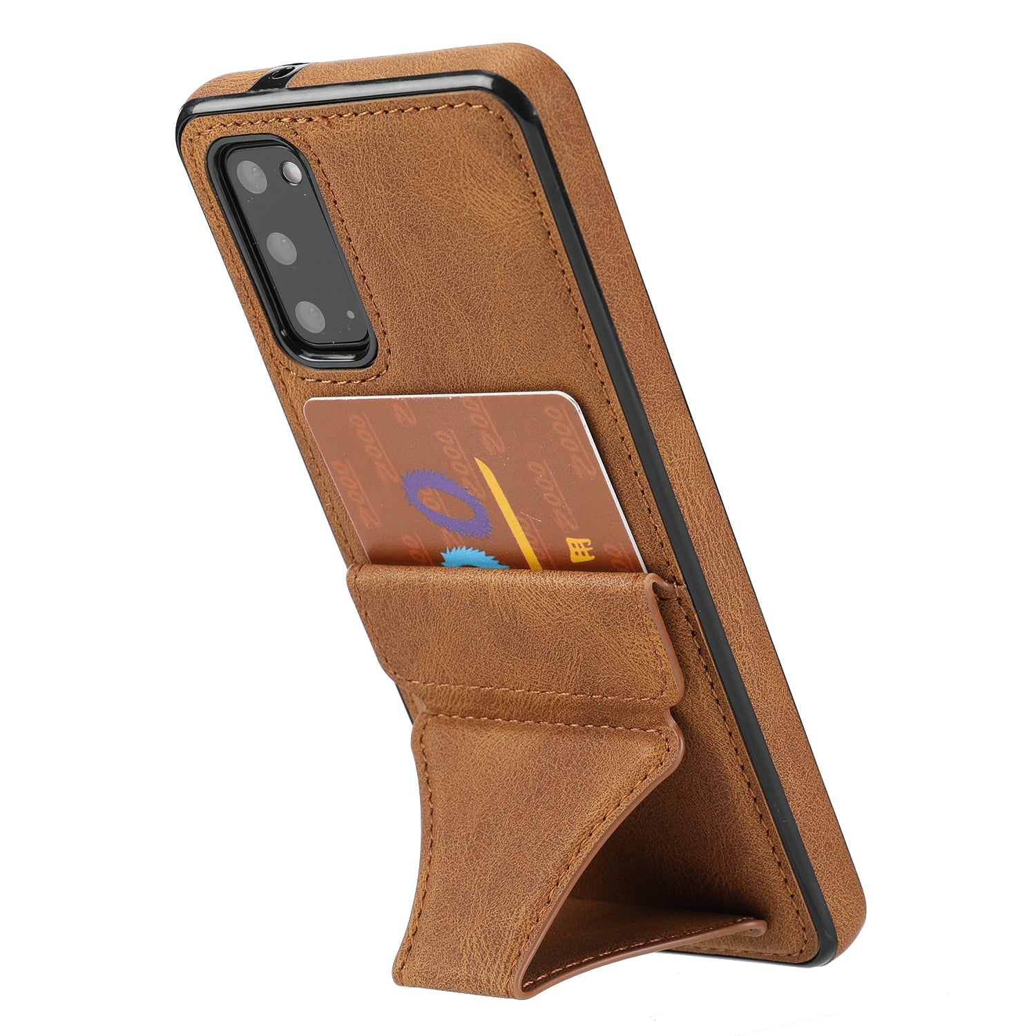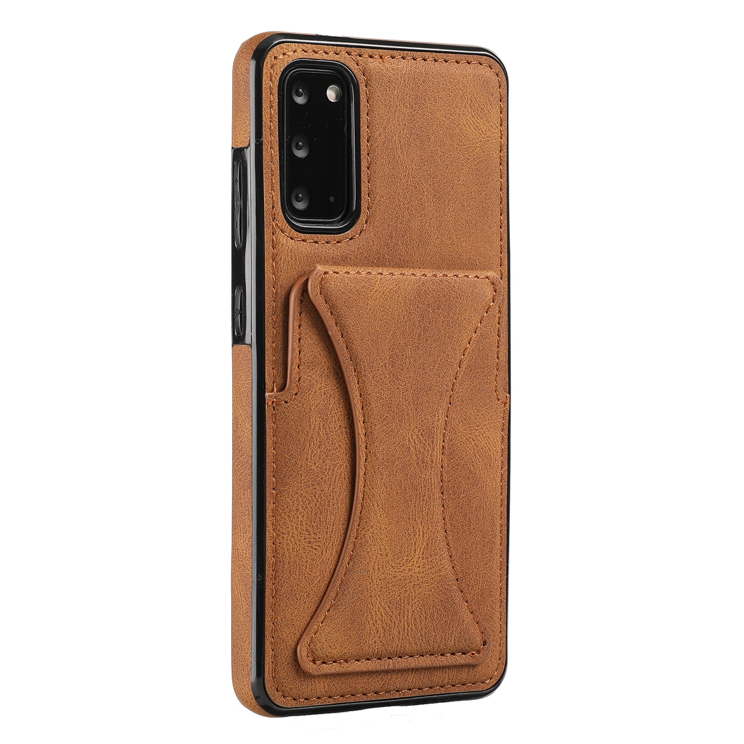 PU Leather Coated TPU Hybrid Phone Case Cover with Kickstand and Card Holder for Samsung Galaxy S20 FE 2022/S20 FE 4G/S20 FE 5G/S20 Lite - Brown