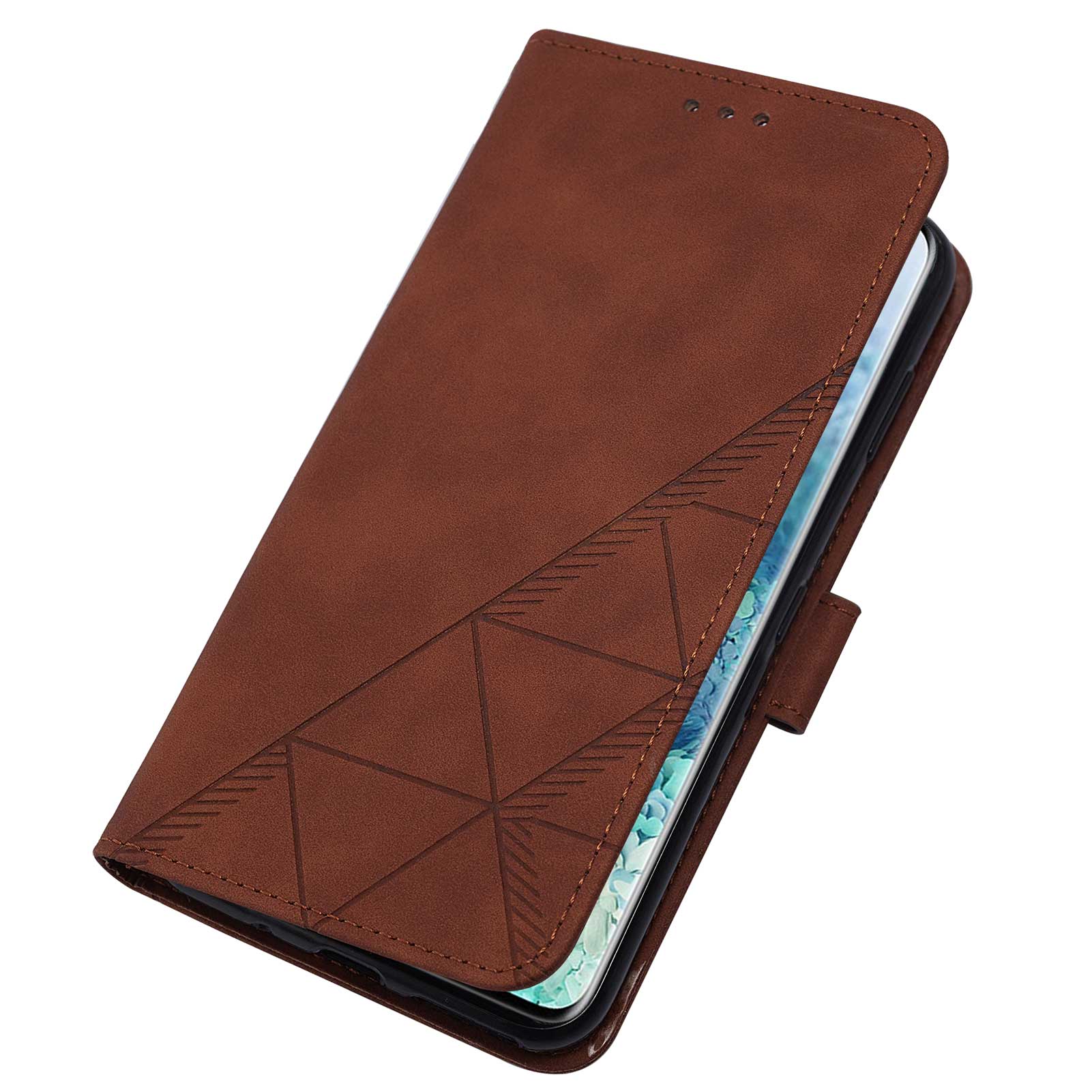PU Leather Imprinting Lines Wallet Case Stand Feature Shockproof TPU Shell with Strap for Samsung Galaxy S20 4G/S20 5G - Brown