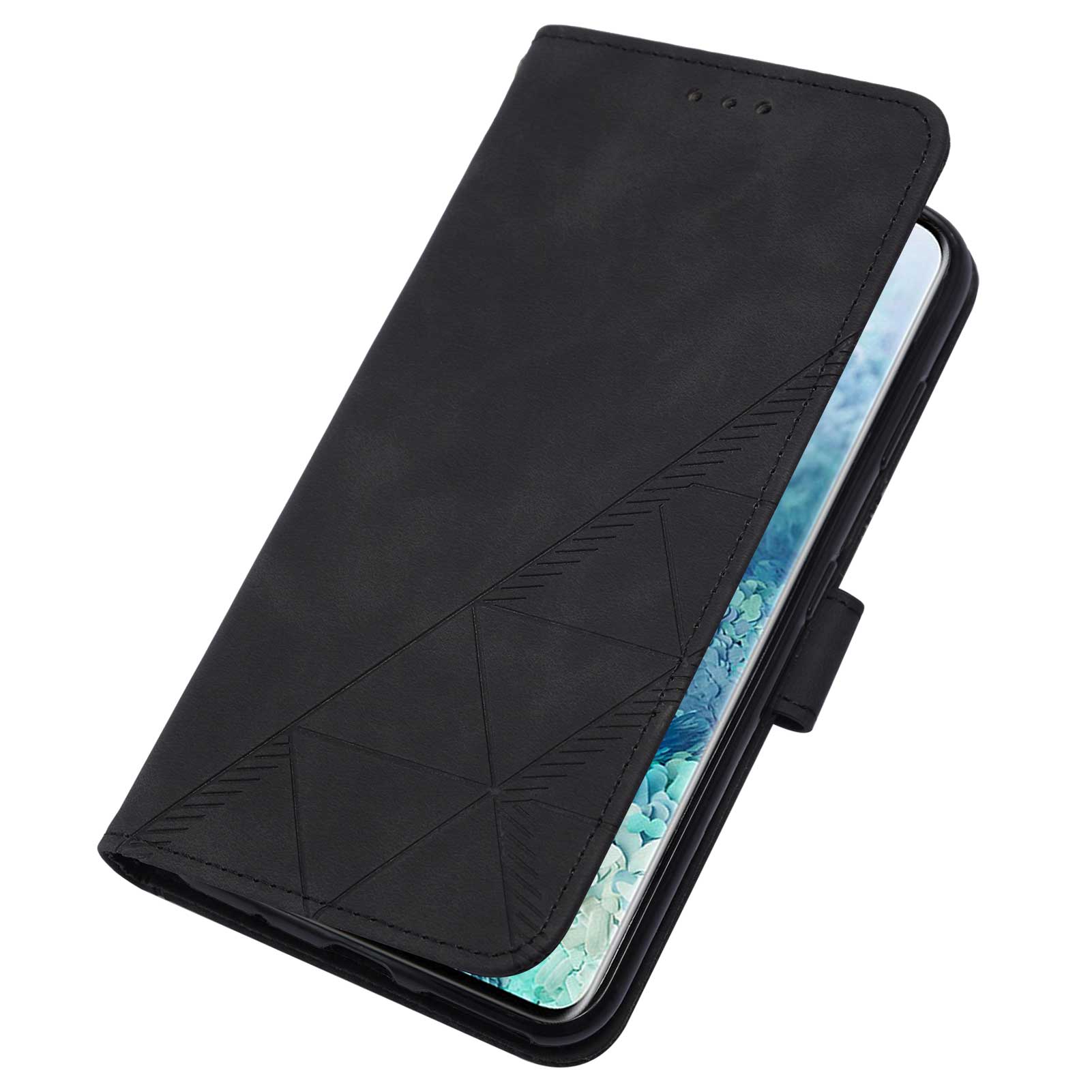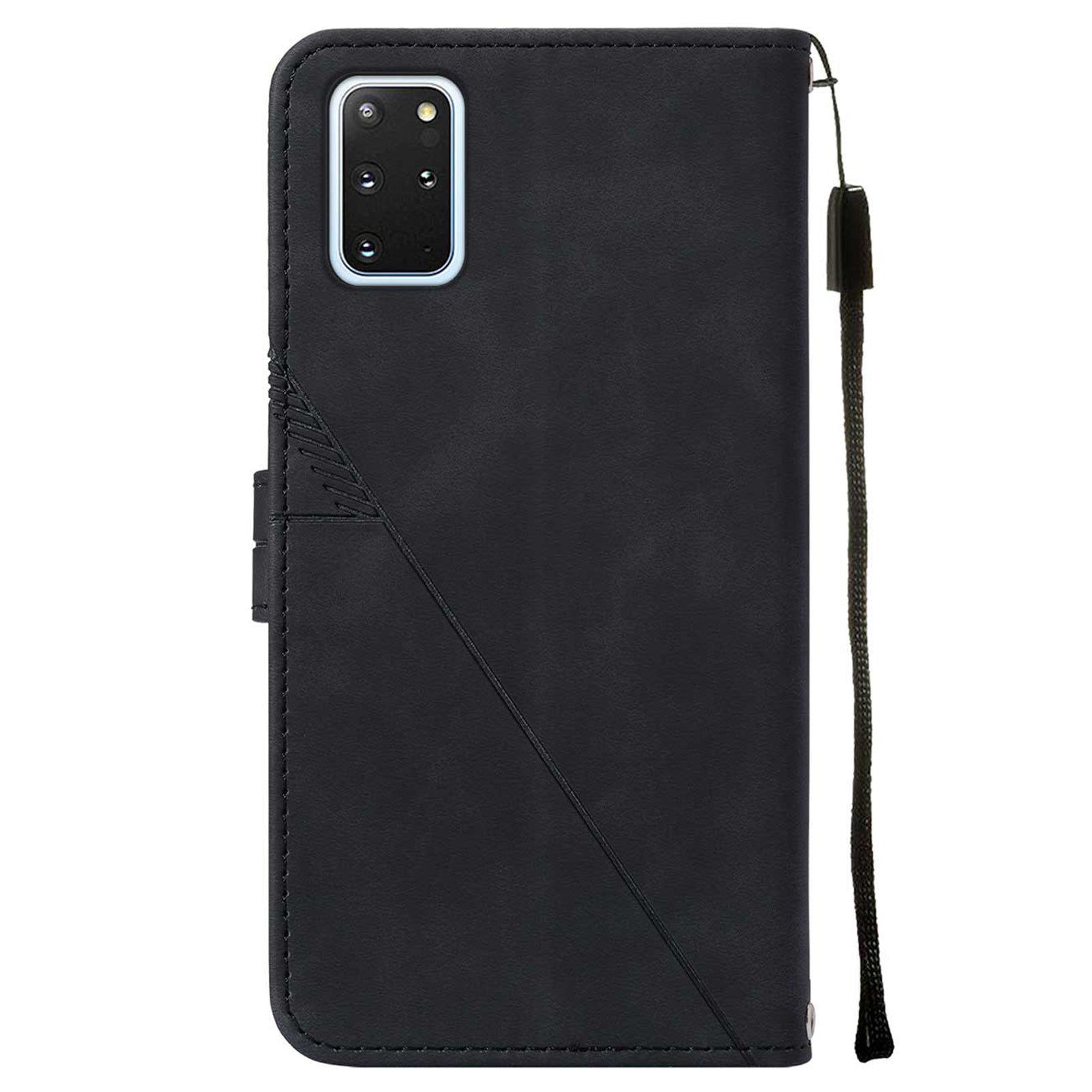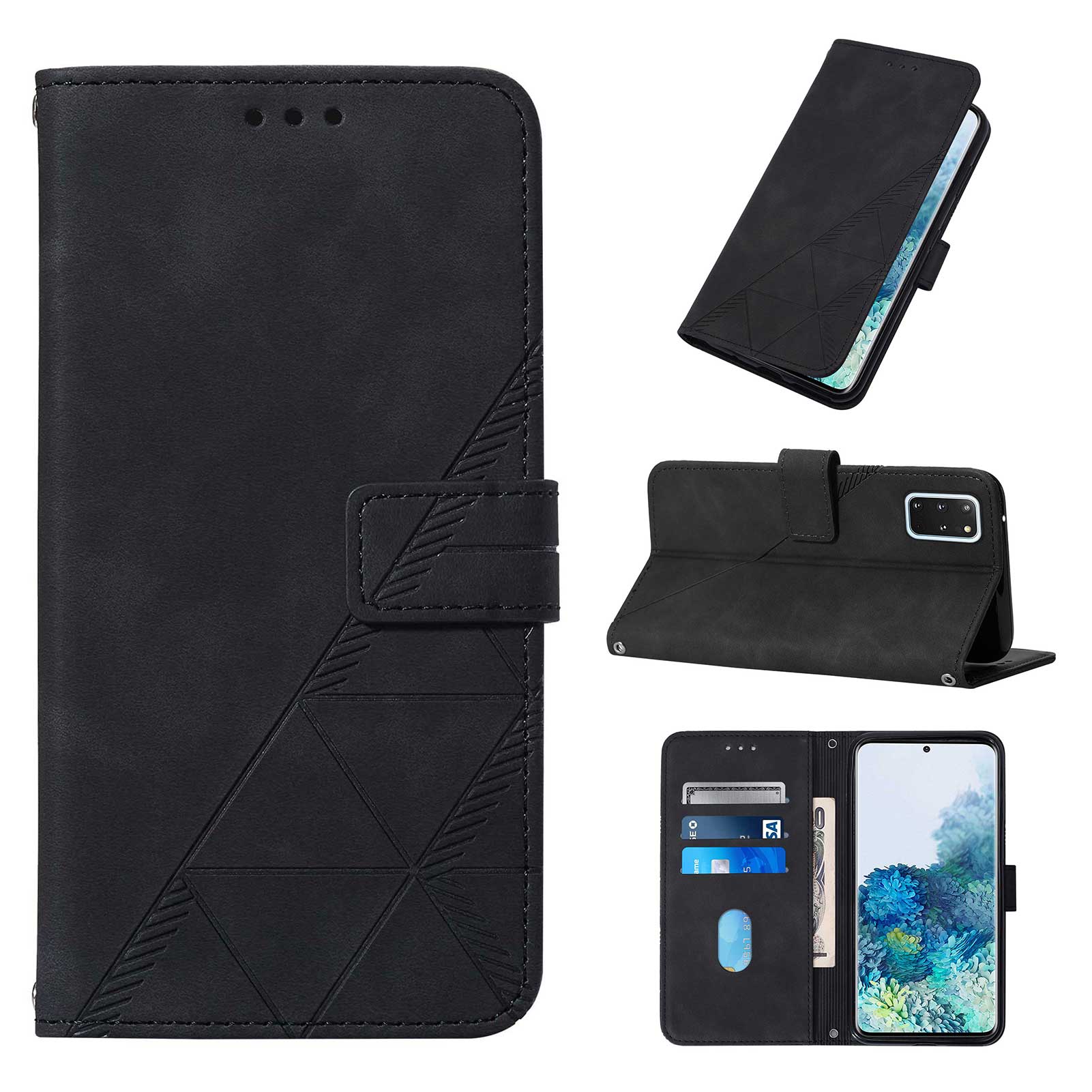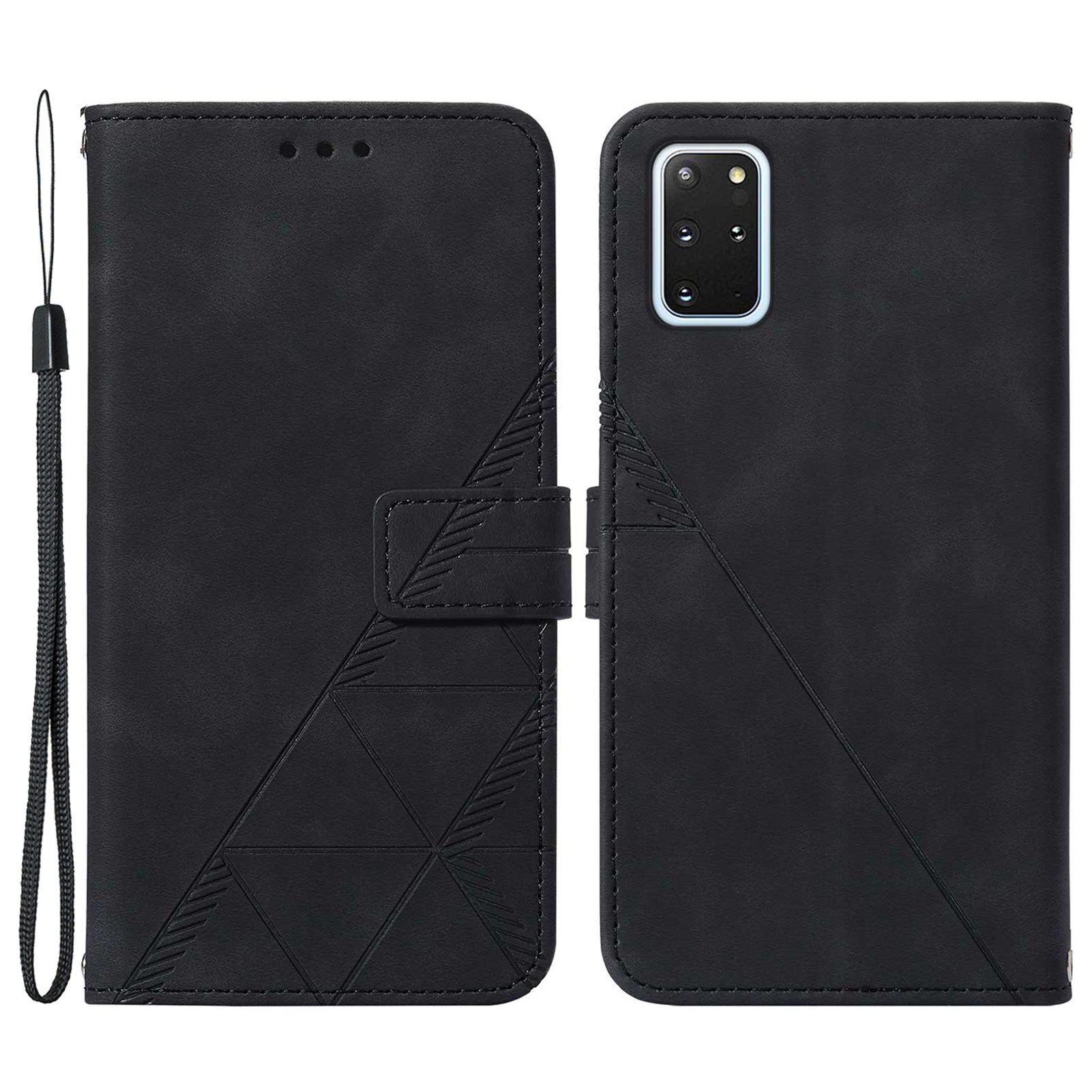 PU Leather + TPU Imprinting Lines Wallet Stand Phone Case Shell for Samsung Galaxy S20 Plus 4G / 5G - Black