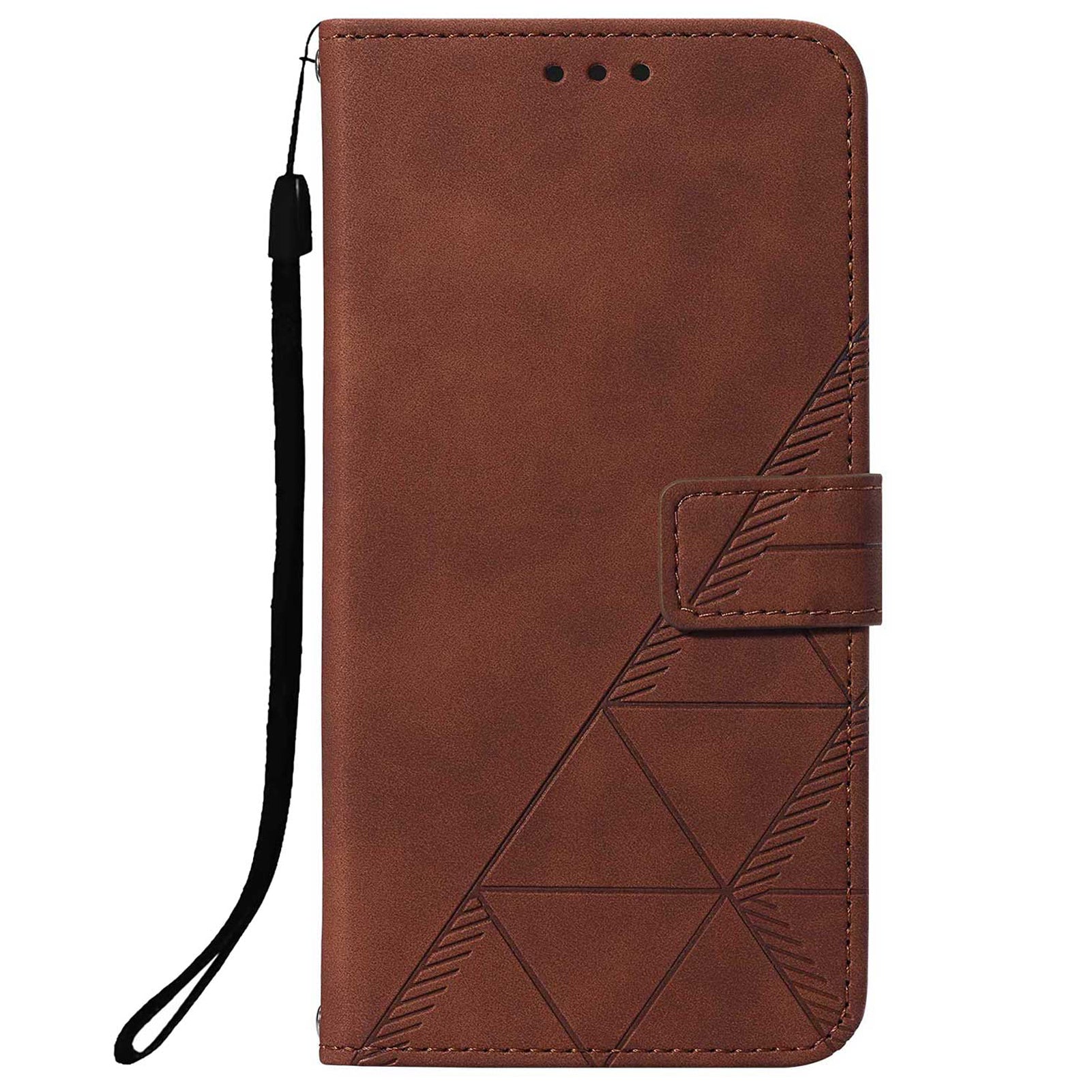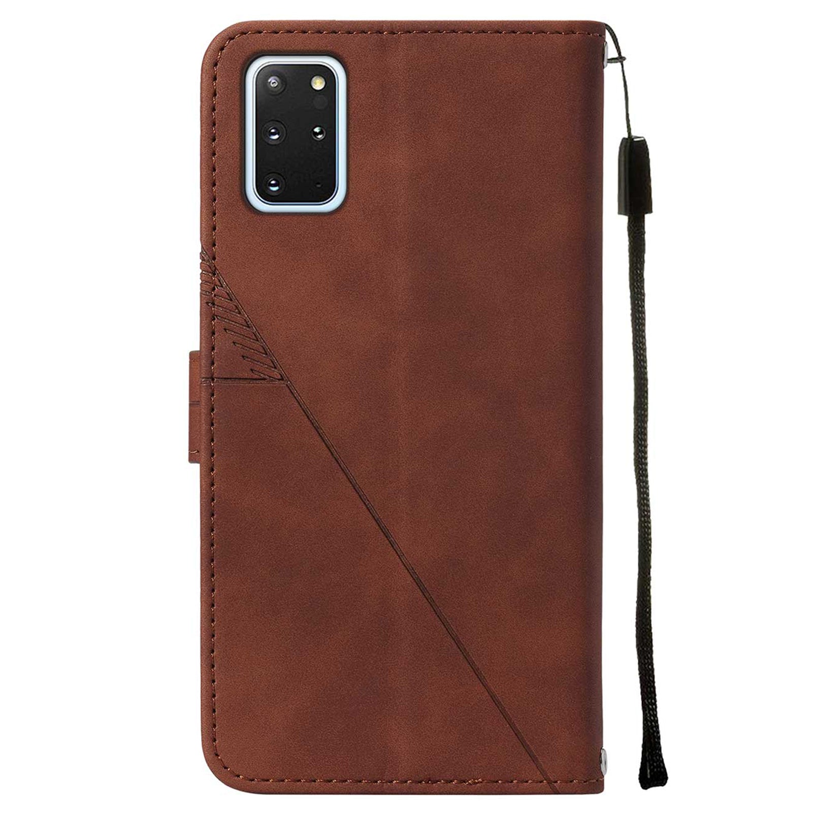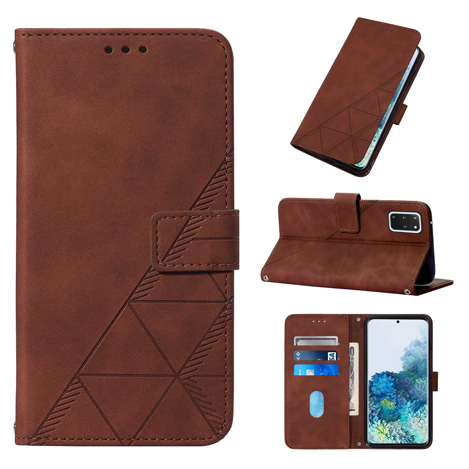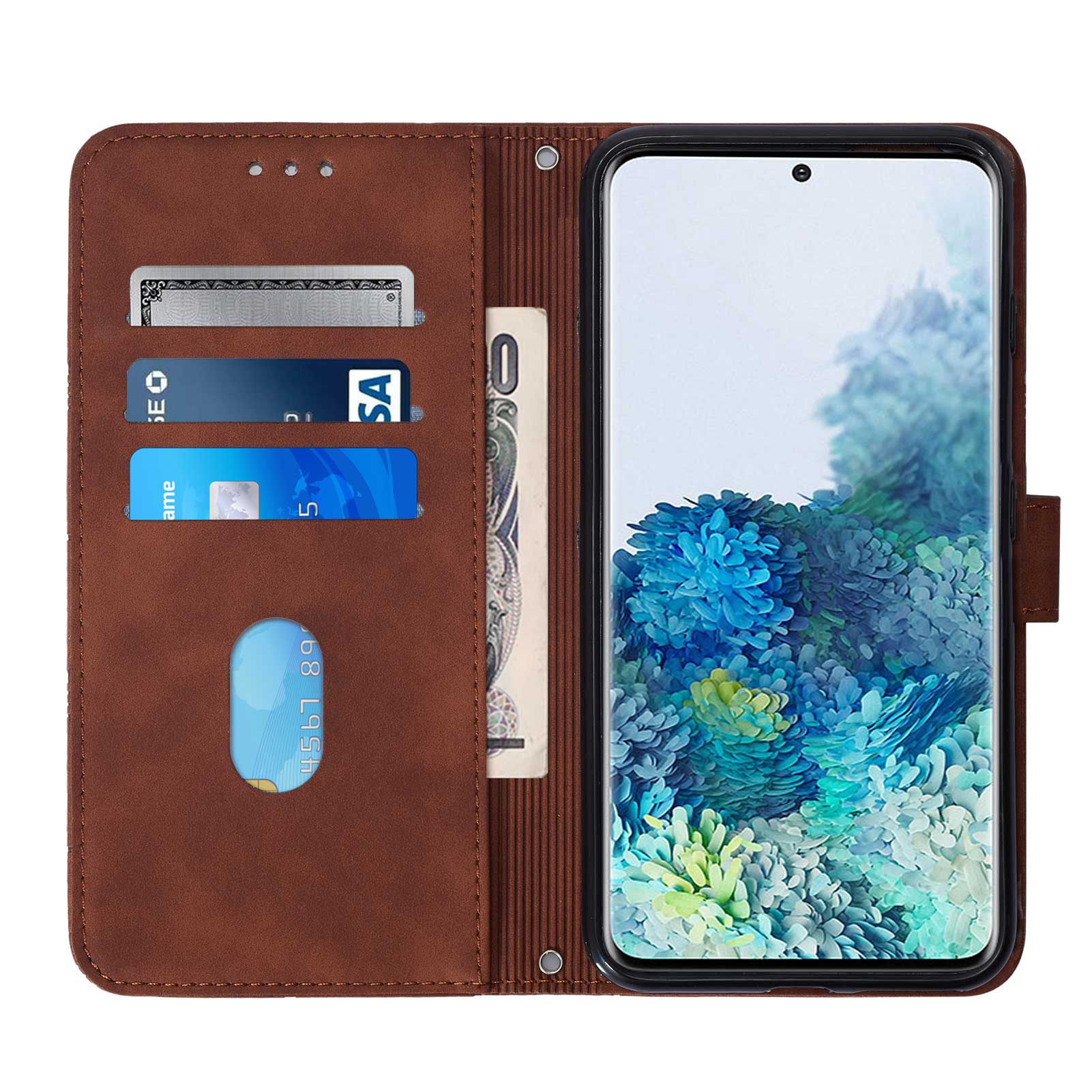 PU Leather + TPU Imprinting Lines Wallet Stand Phone Case Shell for Samsung Galaxy S20 Plus 4G/5G - Brown