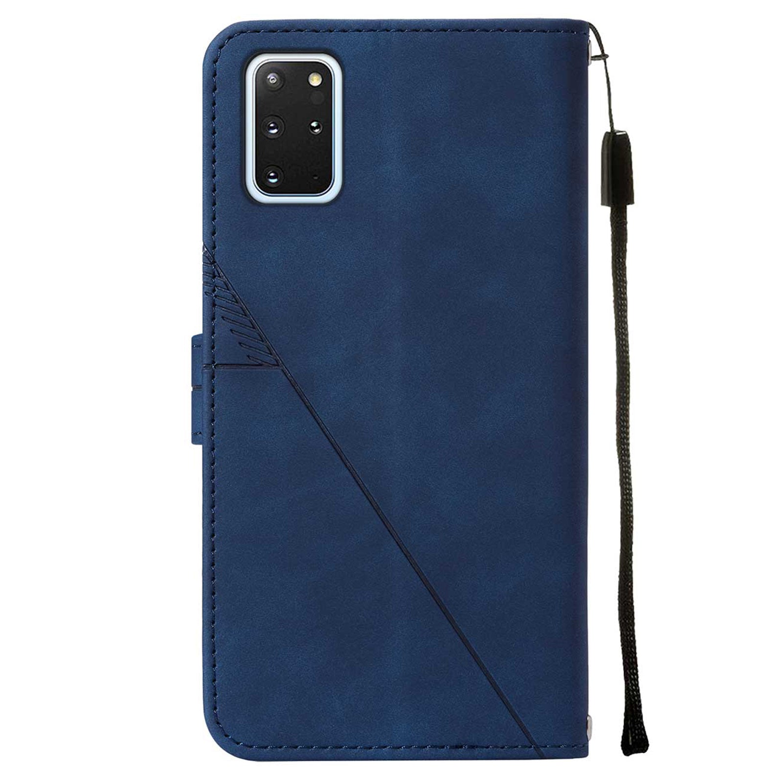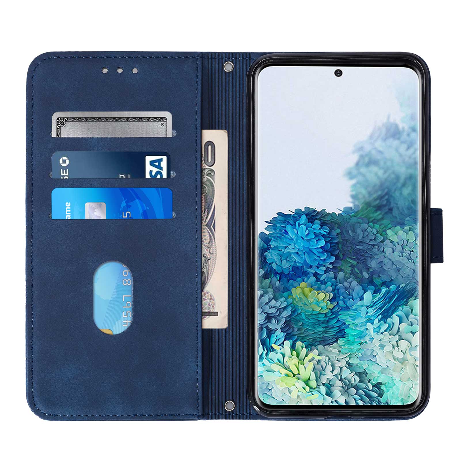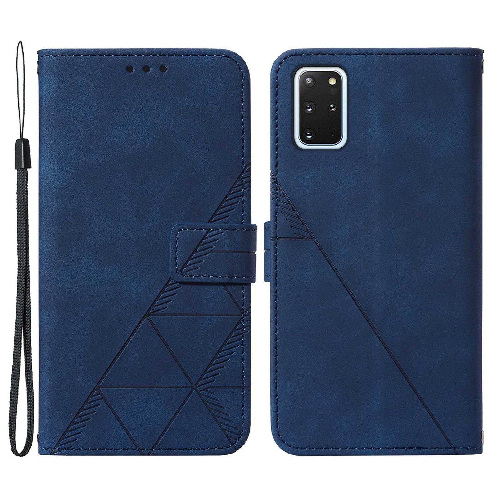 PU Leather + TPU Imprinting Lines Wallet Stand Phone Case Shell for Samsung Galaxy S20 Plus 4G/5G - Sapphire