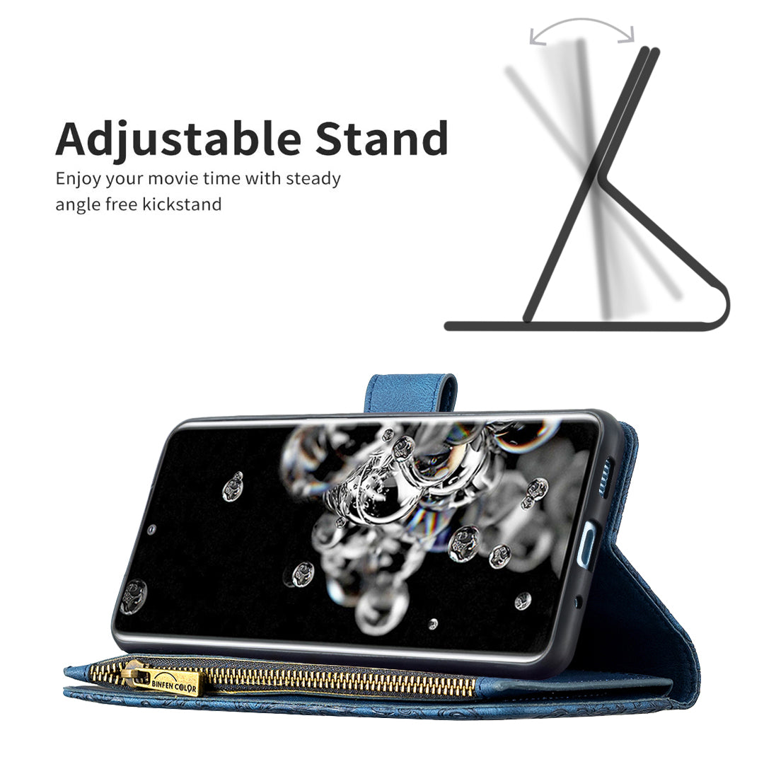 PU Leather Wallet Case for Samsung Galaxy S20 Ultra, Zipper Pocket Pattern Stand Flip Phone Cover - Blue