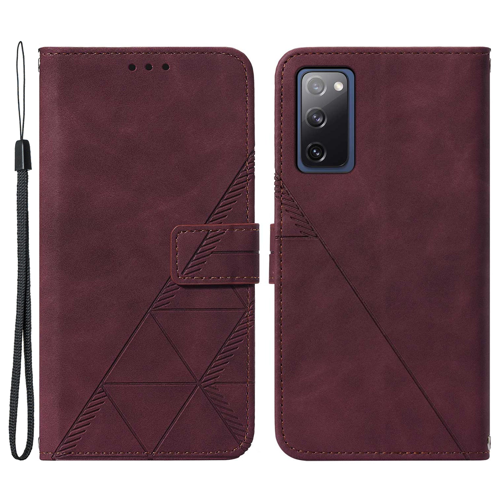 PU Leather Wallet Case Stand Lines Imprinted Flip Protective Cover with Strap for Samsung Galaxy S20 FE 2022/S20 FE/S20 FE 5G / S20 Lite - Wine Red