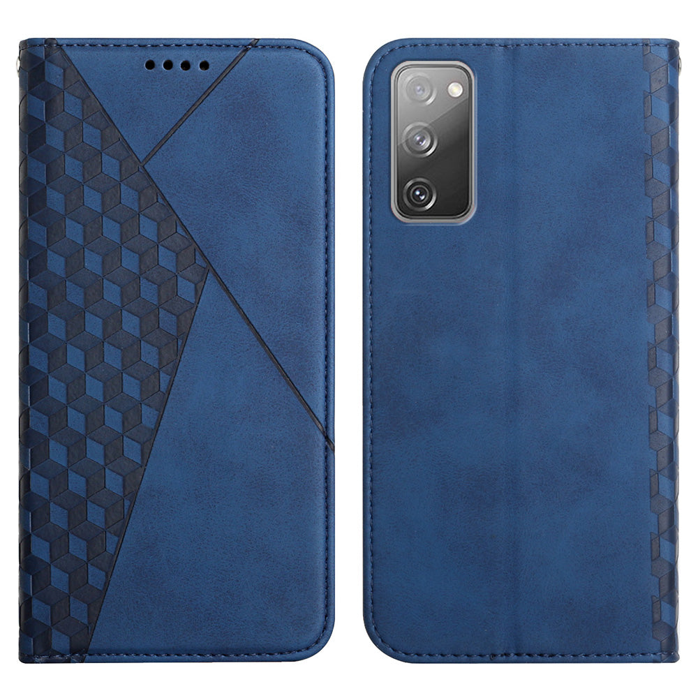 Rhombus Pattern Skin-touch Feel Magnetic Closure Leather Phone Case Cover for Samsung Galaxy S20 FE 2022/S20 FE 4G/S20 FE 5G/S20 Lite - Blue