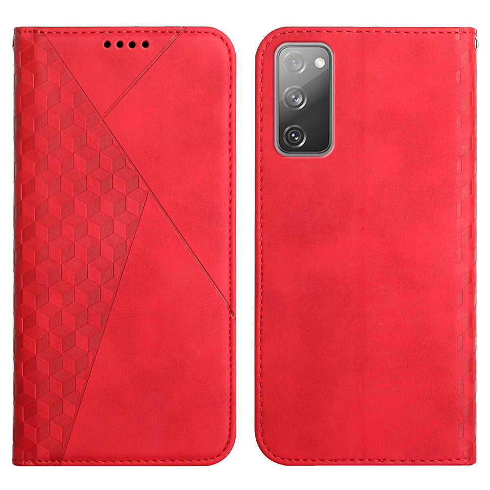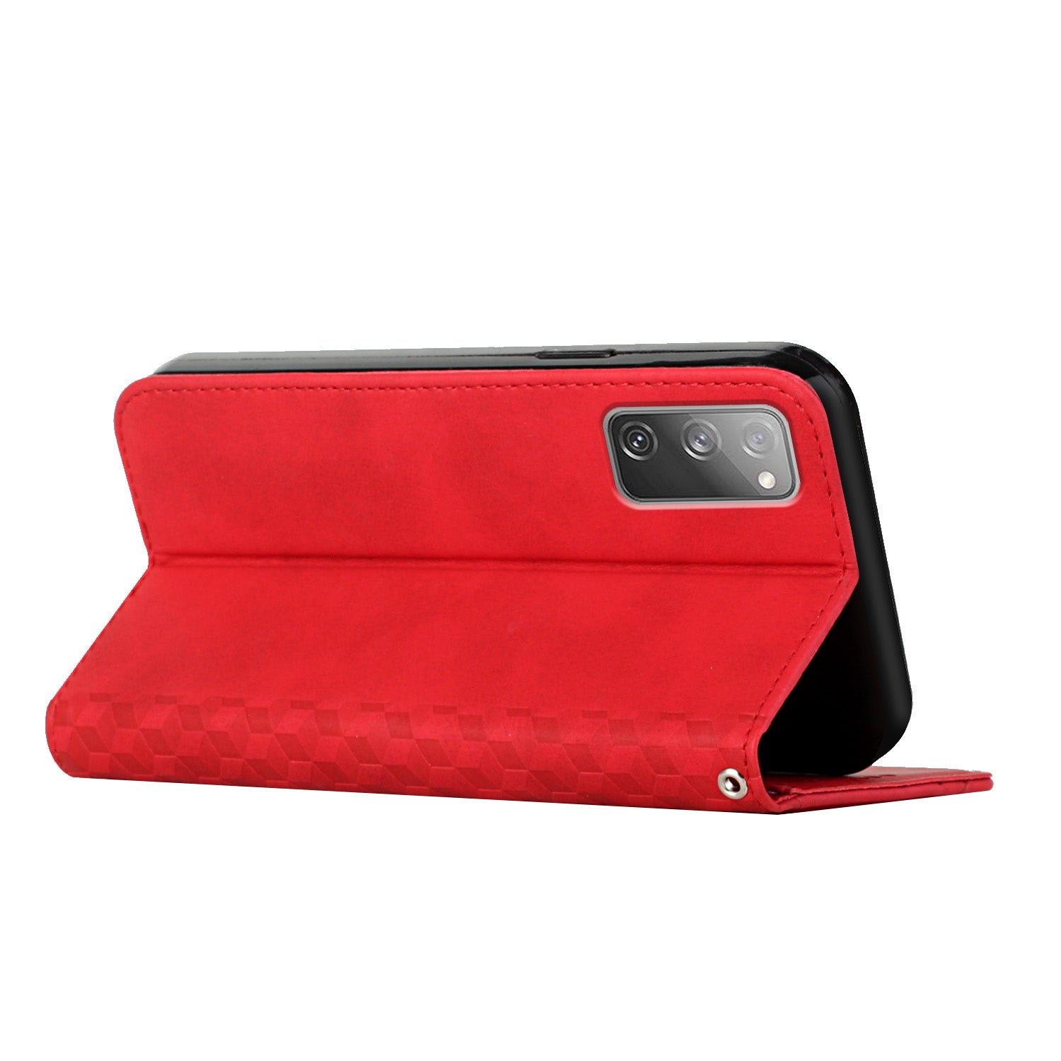 Rhombus Pattern Skin-touch Feel Magnetic Closure Leather Phone Case Cover for Samsung Galaxy S20 FE 2022/S20 FE 4G/S20 FE 5G/S20 Lite - Red