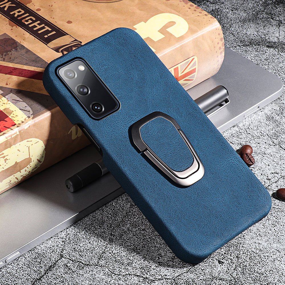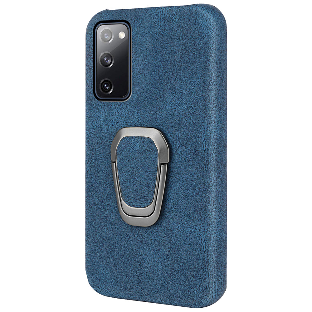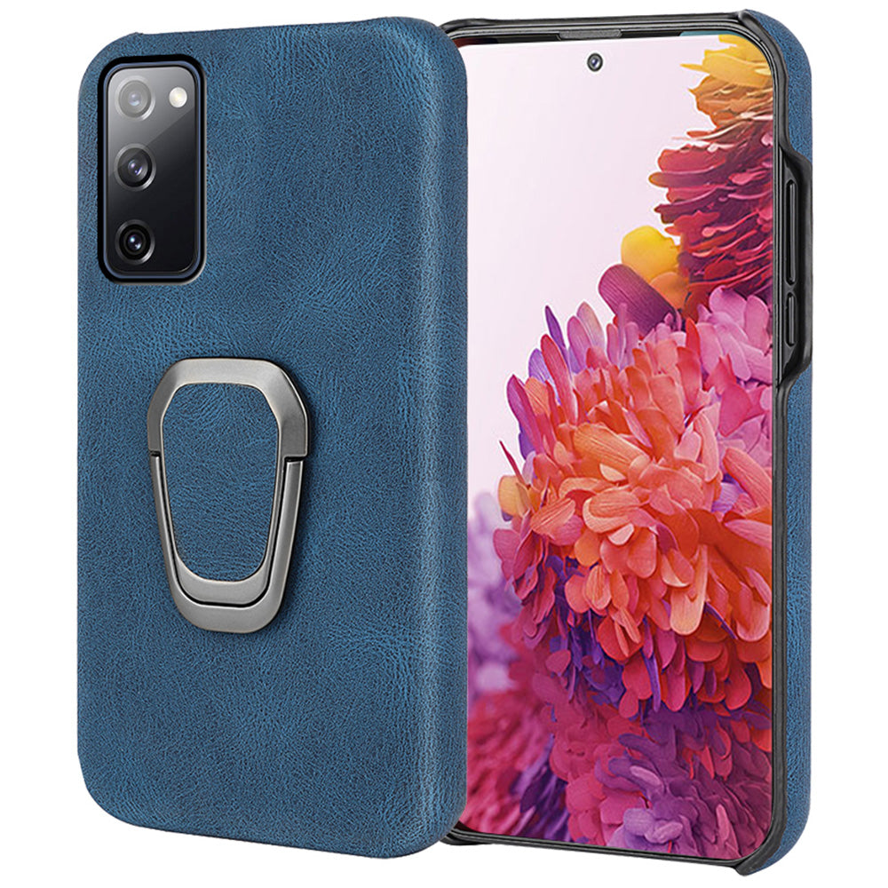Ring Holder Kickstand Anti-scratch PU Leather Coated PC Phone Cover Case for Samsung Galaxy S20 FE 2022/S20 FE/S20 FE 5G /S20 Fan Edition 5G/S20 Fan Edition 4G/S20 Lite - Blue