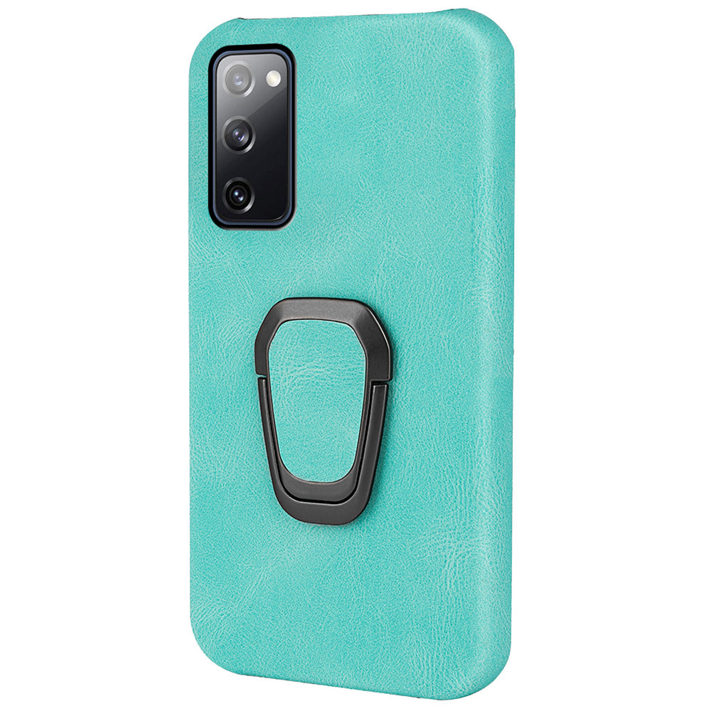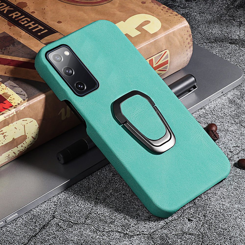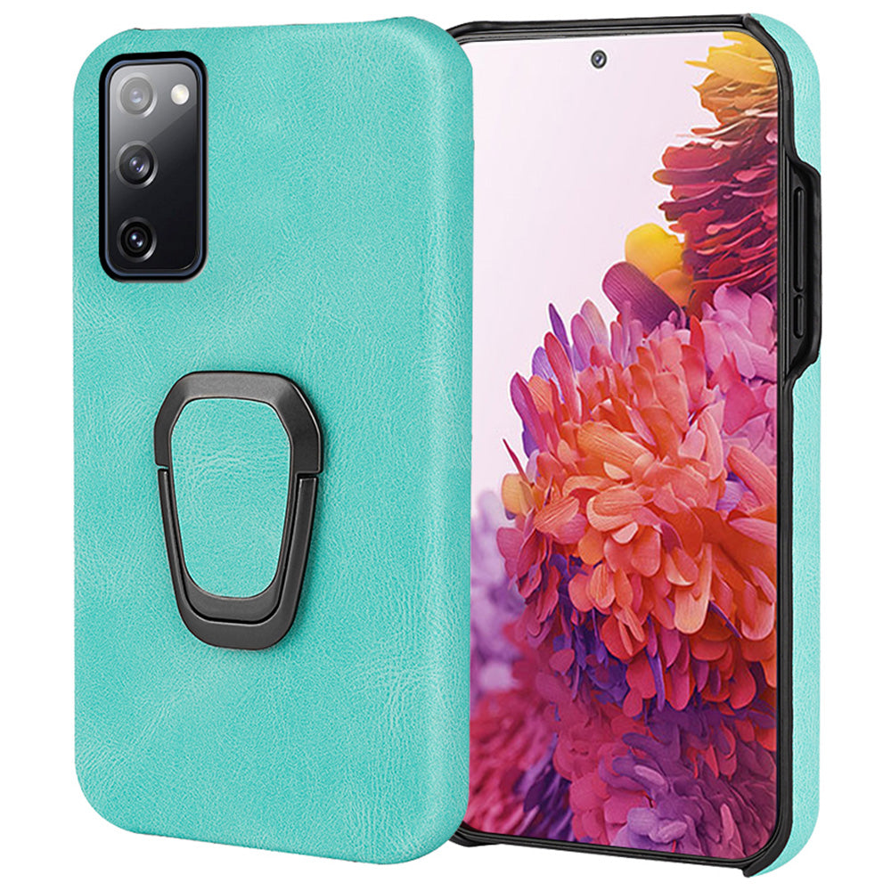 Ring Holder Kickstand Anti-scratch PU Leather Coated PC Phone Cover Case for Samsung Galaxy S20 FE 2022/S20 FE/S20 FE 5G /S20 Fan Edition 5G/S20 Fan Edition 4G/S20 Lite - Matcha Green