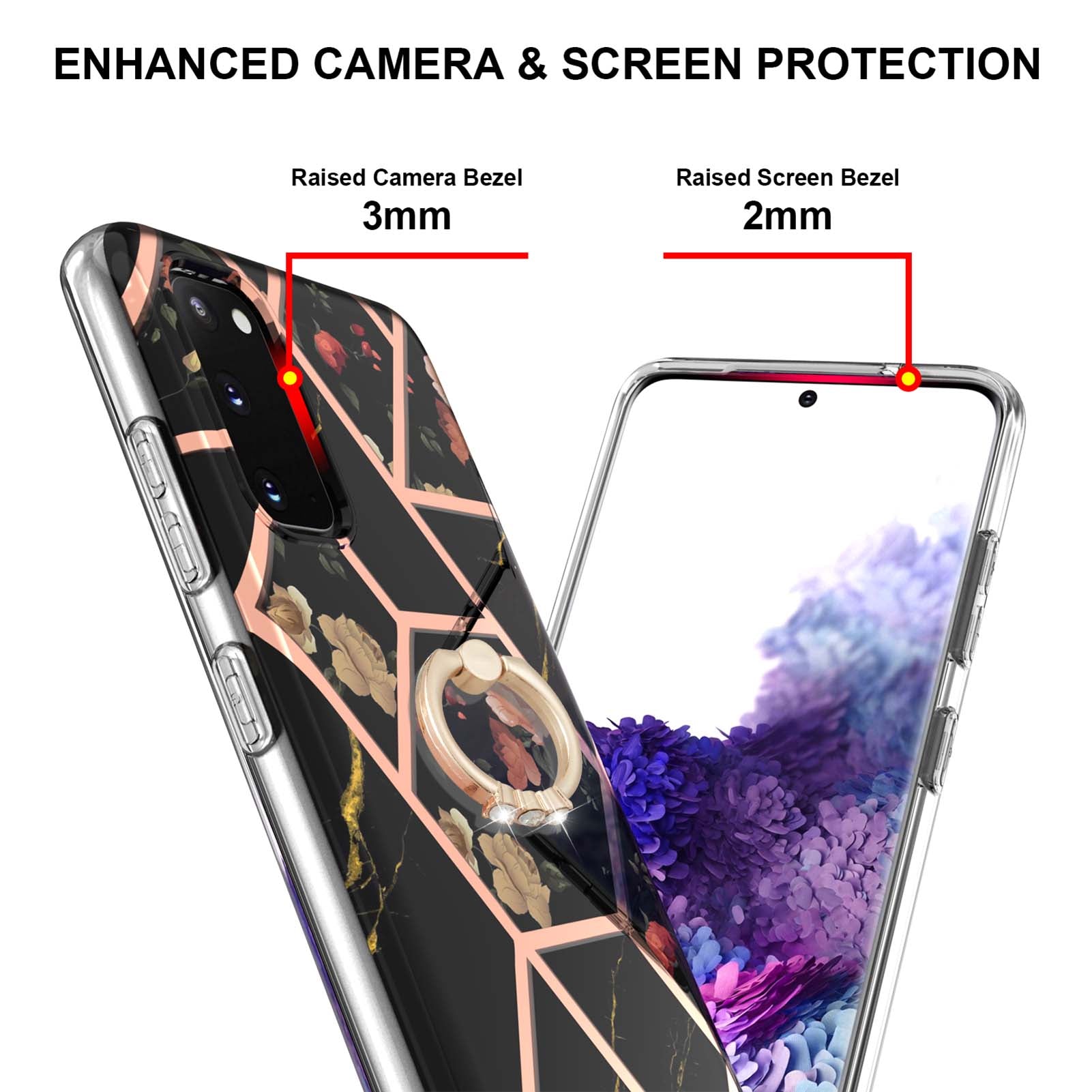 Ring Holder Kickstand Marble Pattern Shockproof TPU IMD Protective Case for Samsung Galaxy S20 4G/S20 5G - Black Flowers