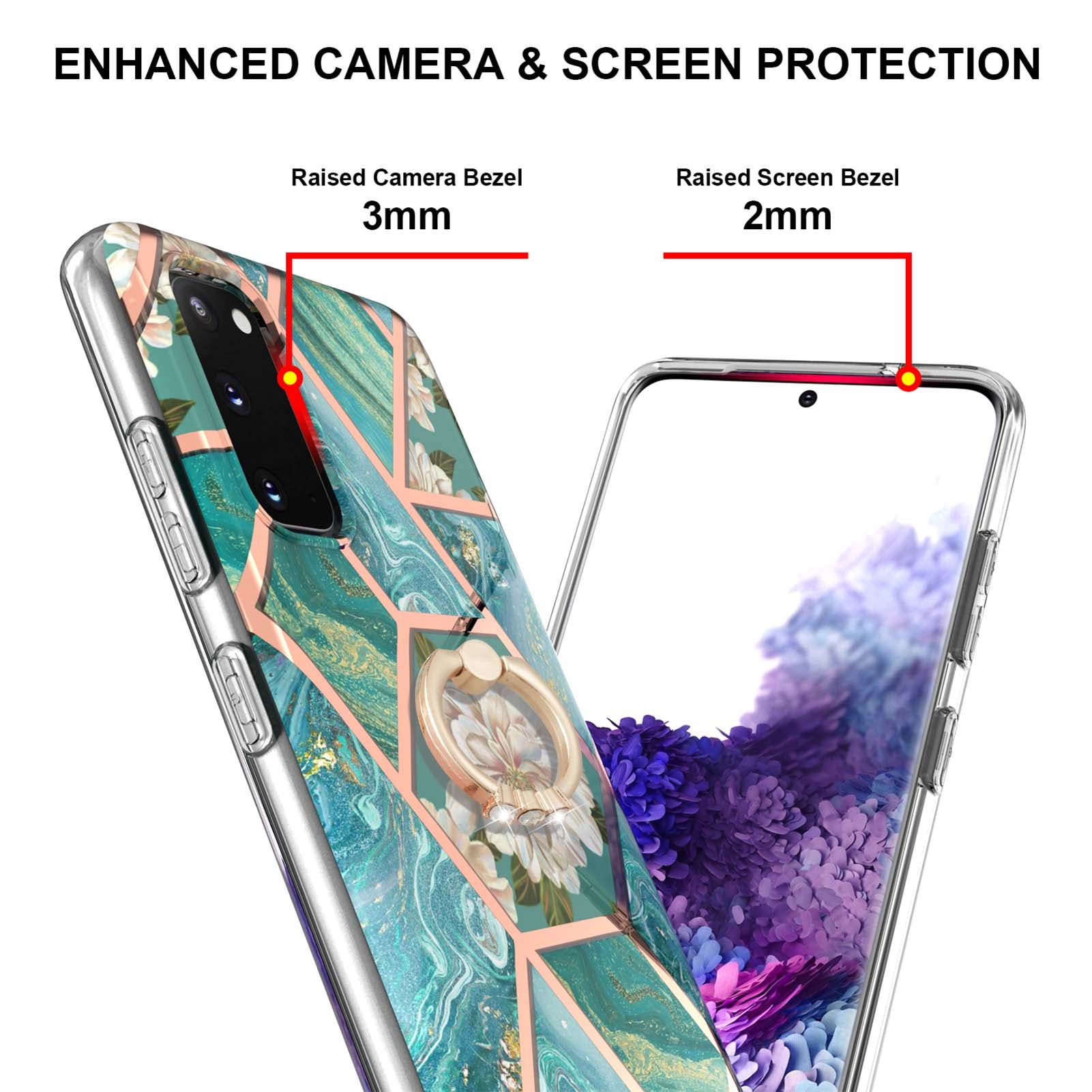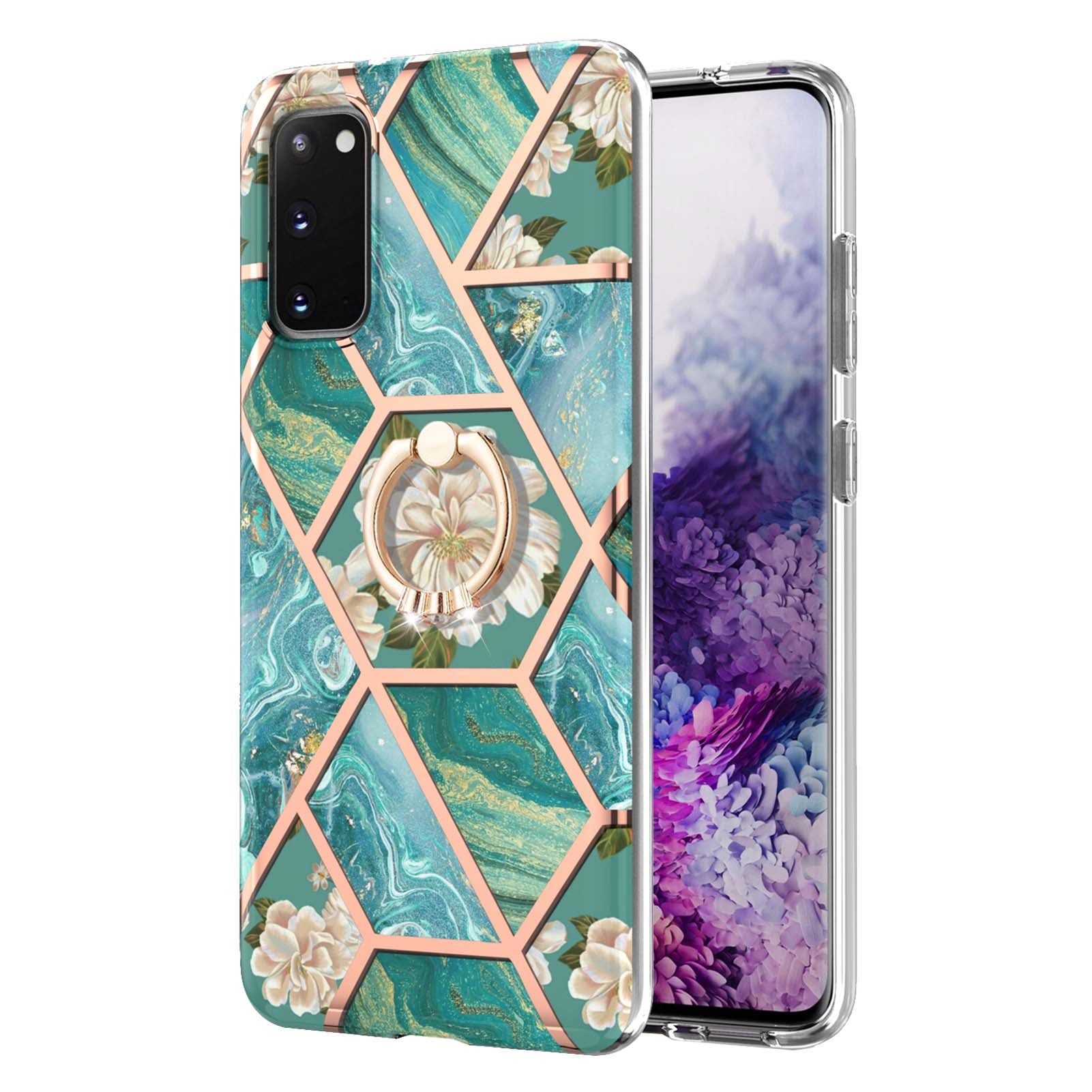 Ring Holder Kickstand Marble Pattern Shockproof TPU IMD Protective Case for Samsung Galaxy S20 4G/S20 5G - Blue Flowers