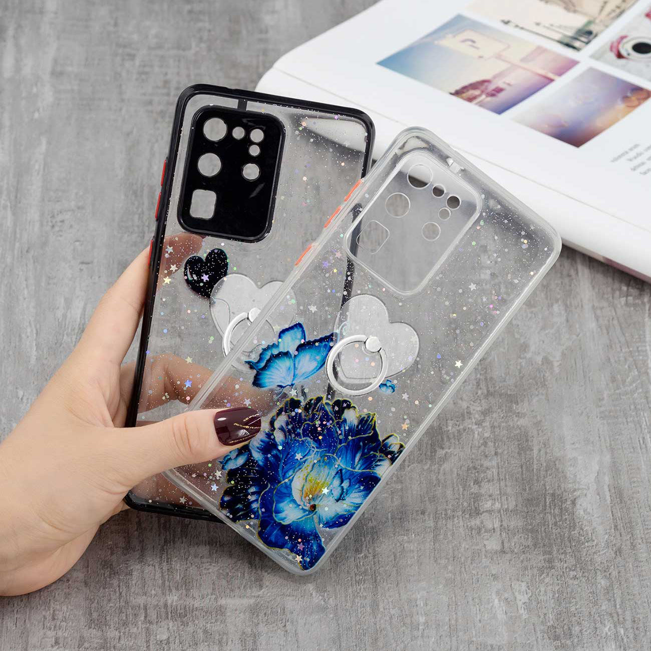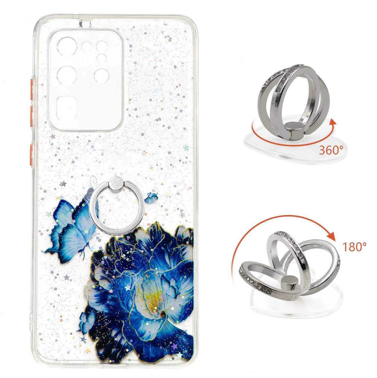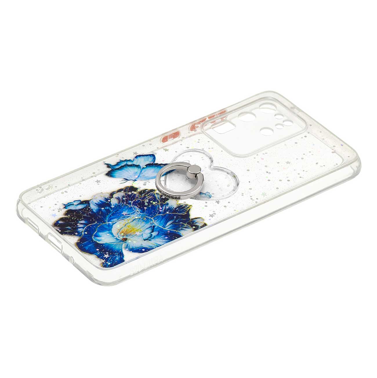 Ring Kickstand Rugged TPU + PC Cover Epoxy Pattern Printing Precise Cutout Case for Samsung Galaxy S20 Ultra - Blue Butterfly