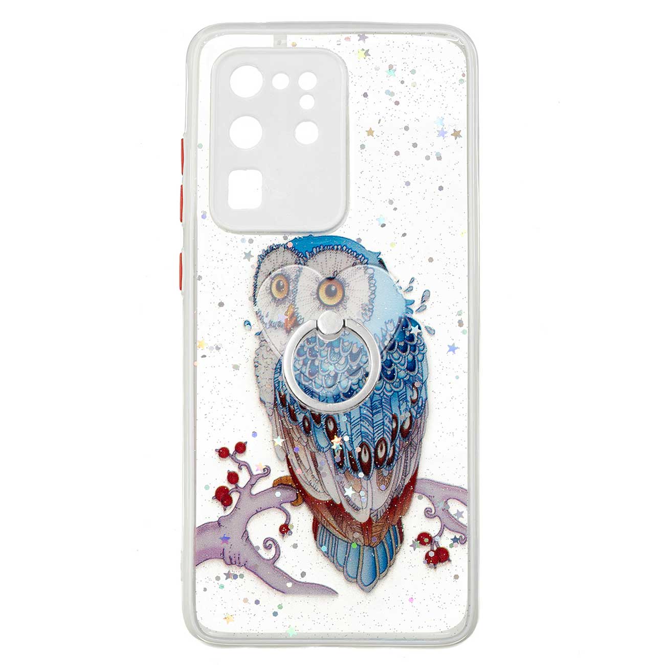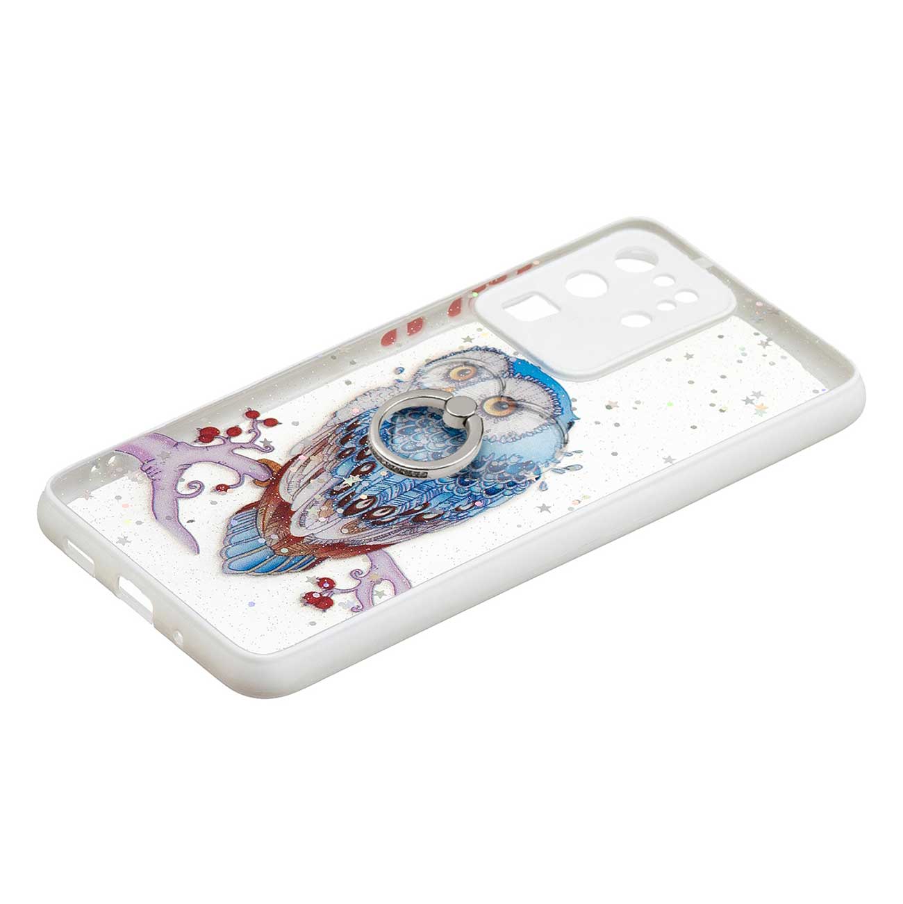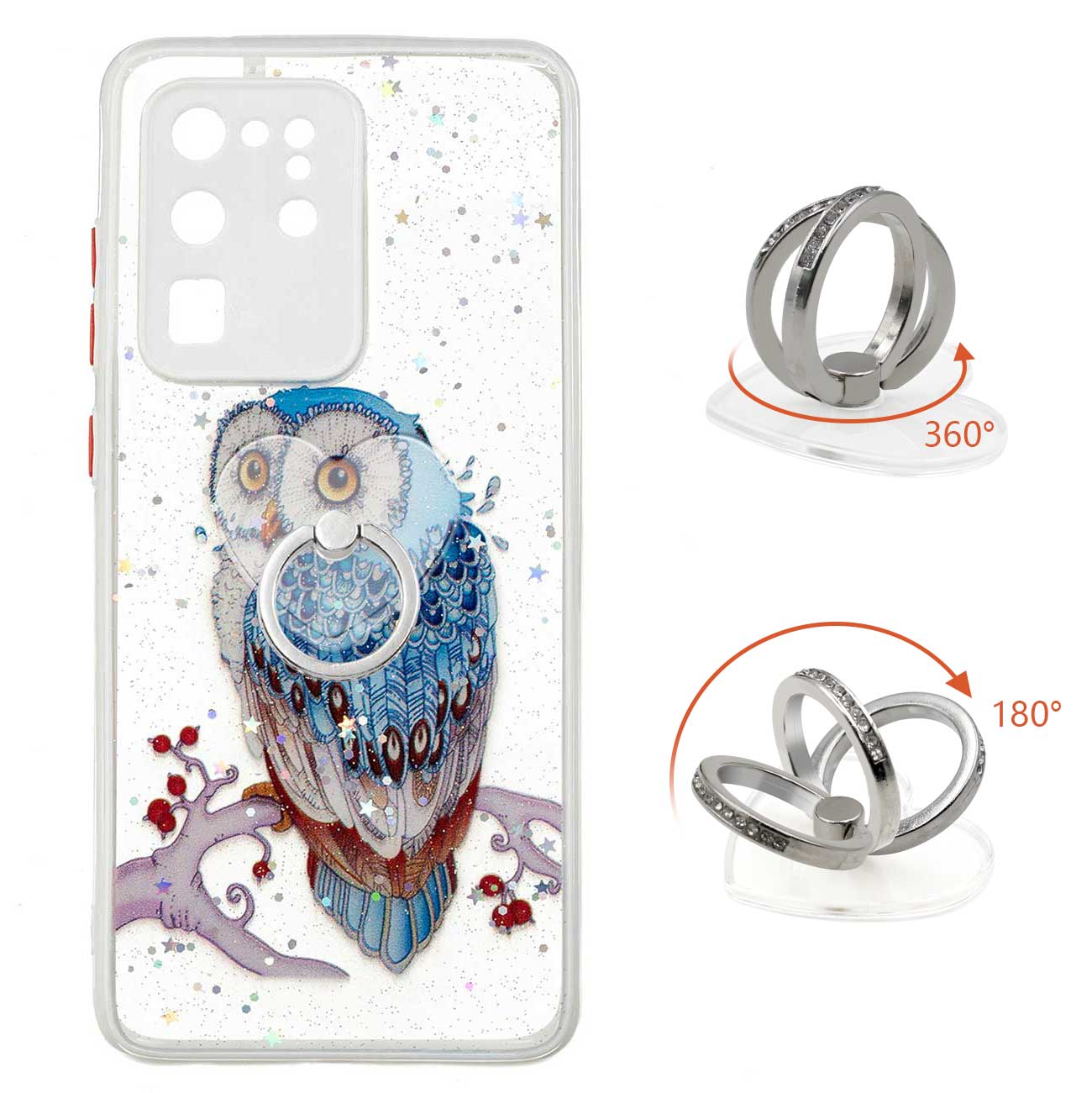 Ring Kickstand Rugged TPU + PC Cover Epoxy Pattern Printing Precise Cutout Case for Samsung Galaxy S20 Ultra - Owl