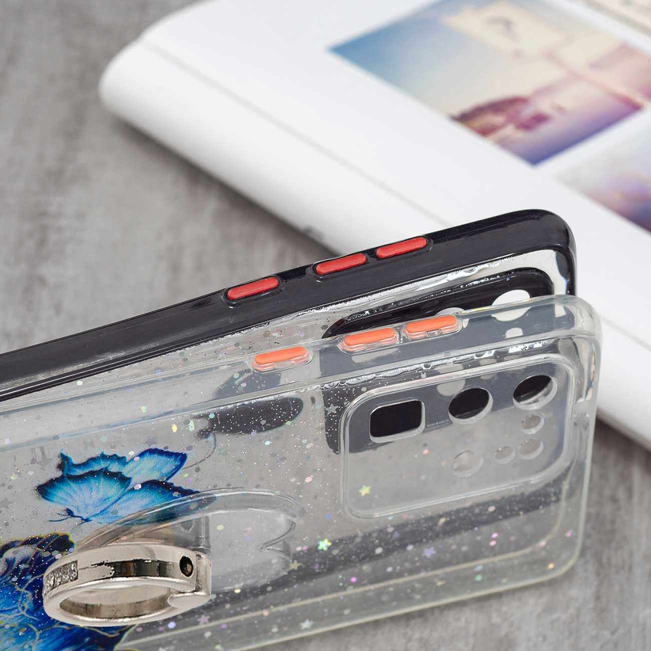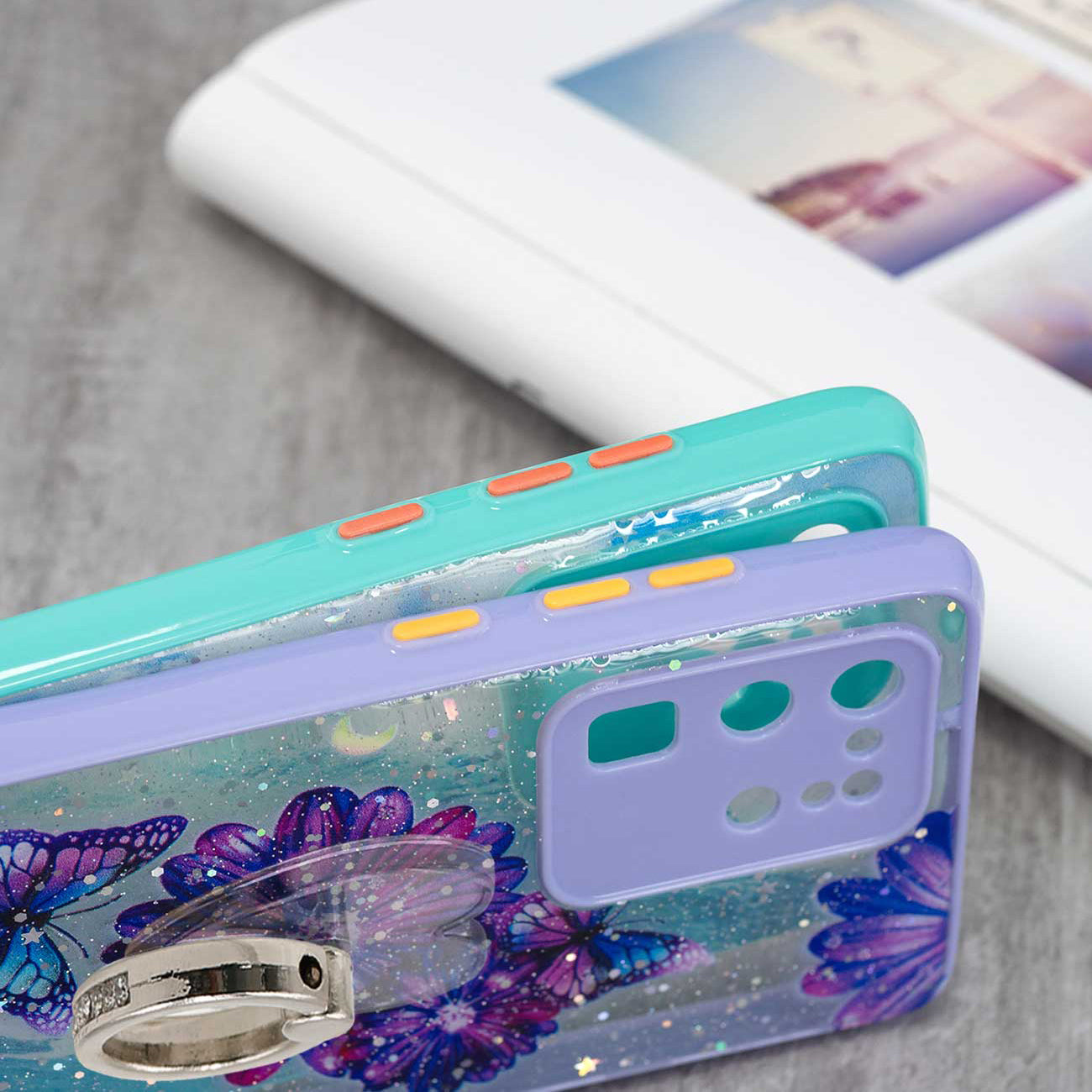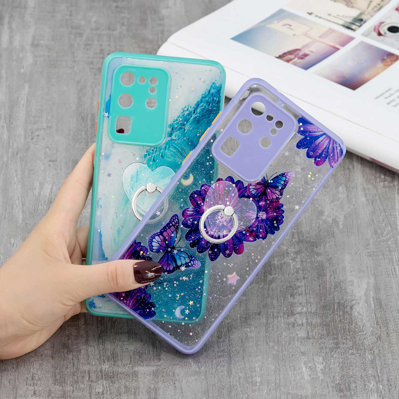 Ring Kickstand Rugged TPU + PC Cover Epoxy Pattern Printing Precise Cutout Case for Samsung Galaxy S20 Ultra - Owl